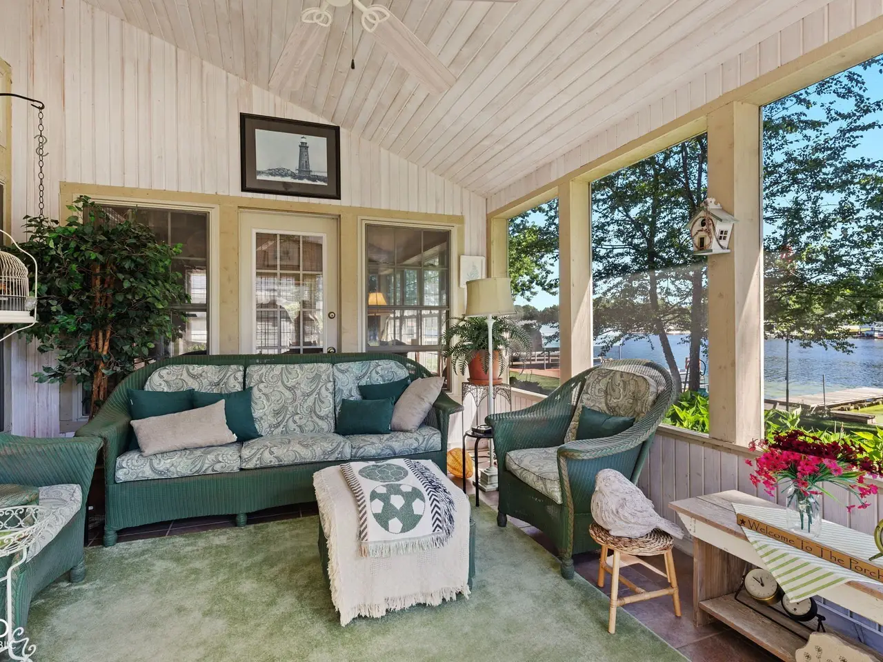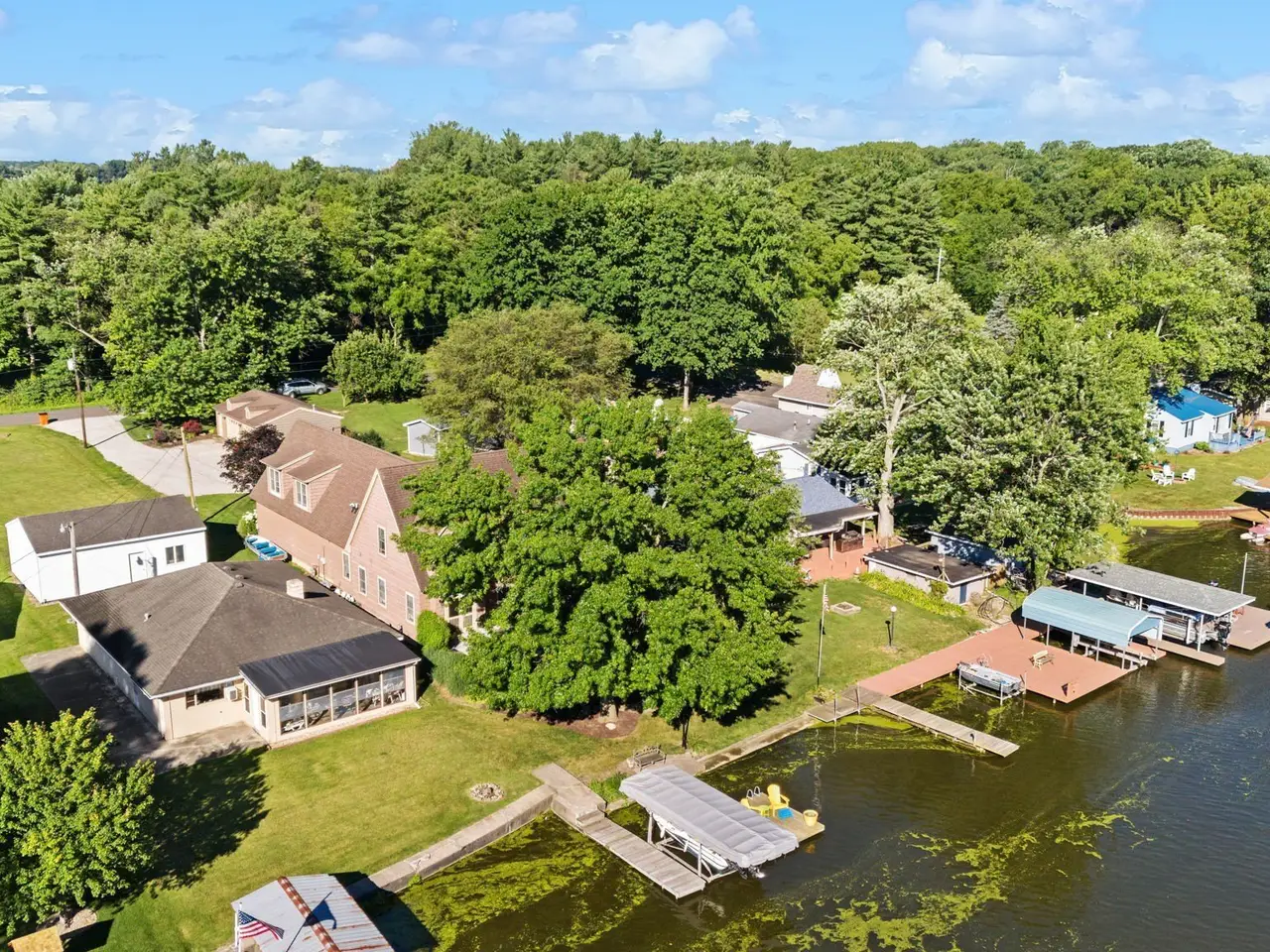 Looking for the quintessential weekend retreat, or a lovely place to call home! This home will fit all of your needs. Sitting on the "Big Monon Bay" which is just a short boat ride to Lake Shafer, Indiana Beach and Tippecanoe Country Club. Property is just 2 hours from Indianapolis and 2.5 hours from downtown Chicago. This fabulous home has 65 feet of water frontage with a seawall and two docks. Home is equipped with a lovely country kitchen, farm sink and center island with sink, both equipped with disposals. Loads of built-ins. Follow the country kitchen to the French doors which open to a screened-in porch, which looks out at the bay. Great room has a stone wood-burning fireplace flanked by pine bookcases with wood harvested from the original homesite. On cool days go through another set of French doors which go out to a 4-season sunroom with beam ceiling. The primary bedroom is on the main floor with a large bath, walk-in closet, and French doors which lead out to one of the two patios located on "Monon Bay". Surrounded by large trees and beautiful perennial flower gardens with underground gutters. The upstairs has two huge bedrooms with loads of windows. A small loft library with window seat storage. Two full baths and a large rec room which could be converted into a suite, there is a two-car attached garage and a detached two car garage with small office with running water, insulated walls and heat, the tranquil setting of this home brings you through a lovely courtyard style patio and will not disappoint. Home is on city sewer and has a well for water. The house is not located in the flood zone and recently received a Loma from FEMA, dated 5/28/2024.