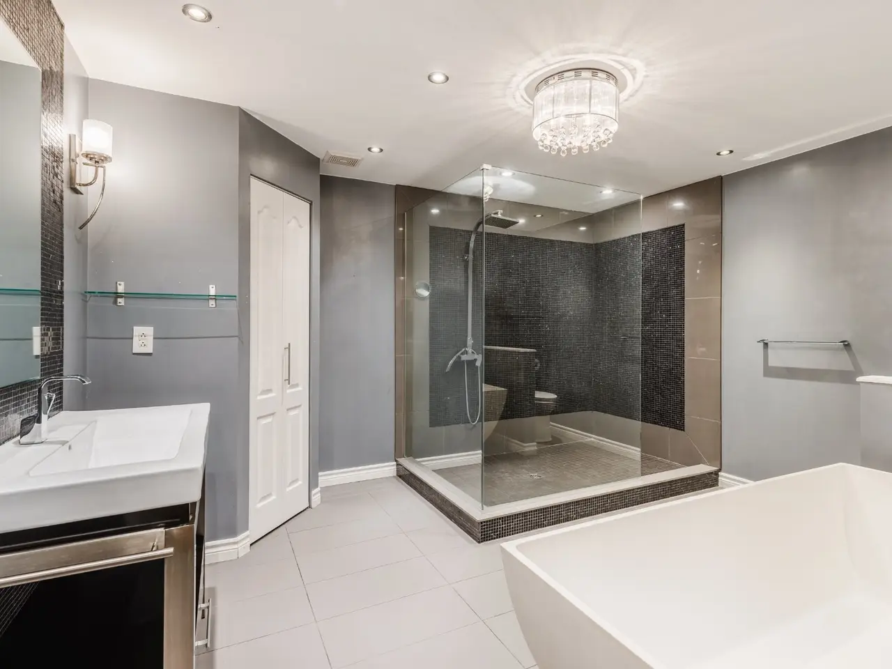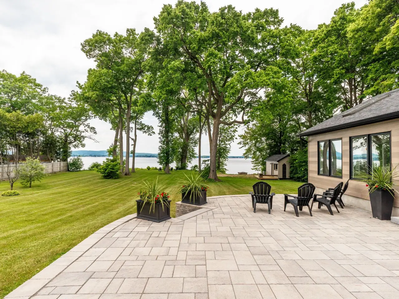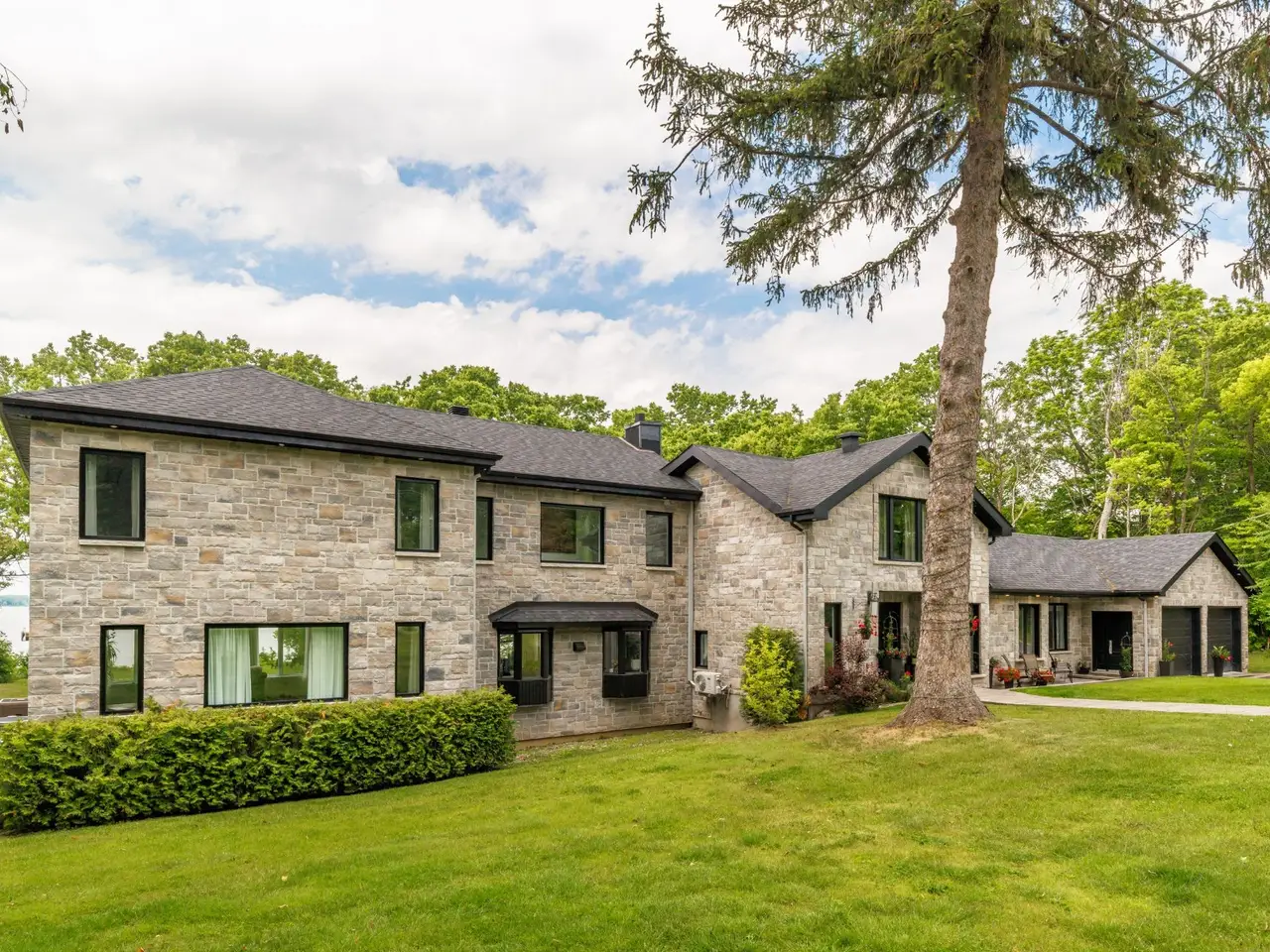 Handsome and imposing waterfront estate, in prime location, w/ panoramic views; this all-stone 7,348 sqft residence, set on a large 52,842 sq ft lot, was built and renovated to a high standard, w/ quality fixtures & finishes, and boasts 5-car garage(2 + 3),7 bedrooms,6.5 bathrooms(4 ensuite),luxury indoor pool pavilion + shower,bar,4 fireplaces, grand oak staircase(basement to 2nd floor),porcelain and hardwood floors (1st & 2nd),chef's custom wood kitchen with premium appliances, dinette, formal dining room,2 living rooms, games room/family (cinema) room, primary bedroom suite, custom walk-ins, balcony & large unistone patio, private backyard & sandy beach.