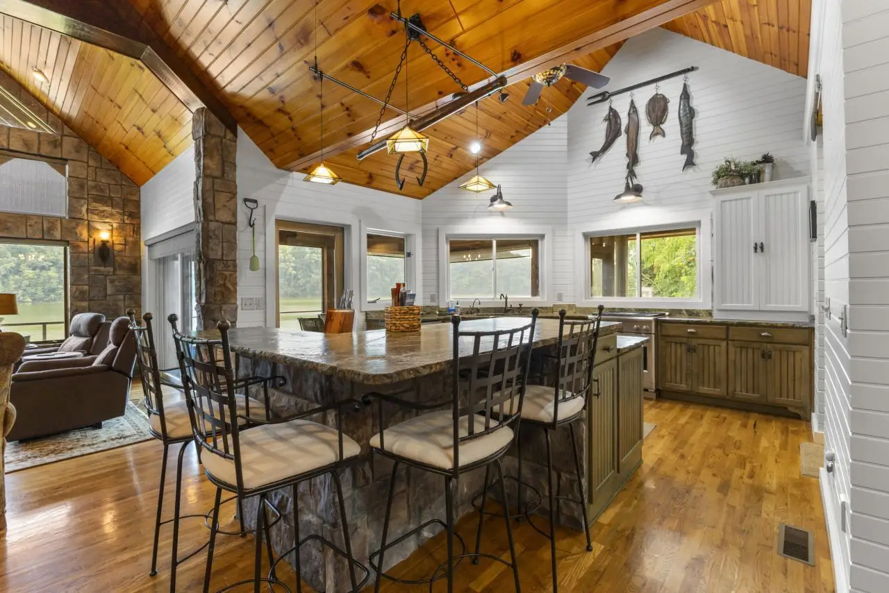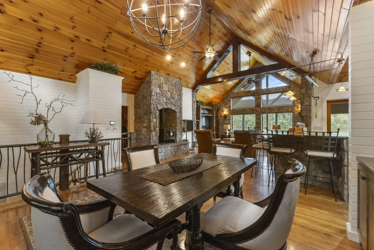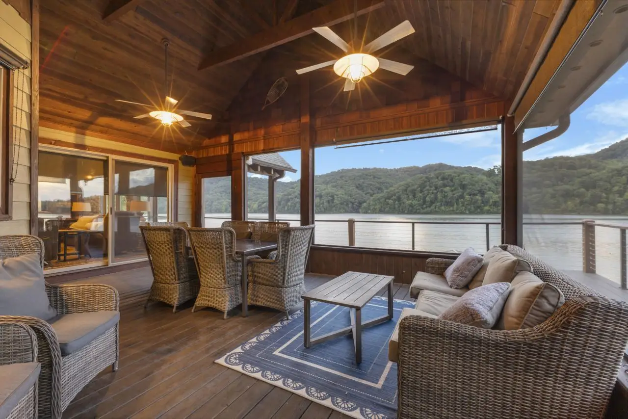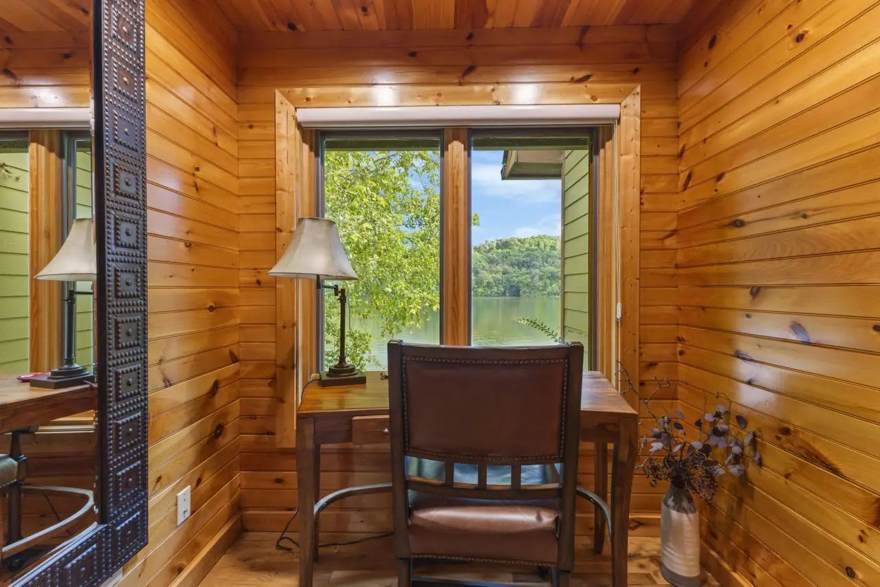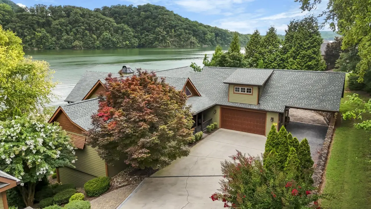 Welcome to 743 Jim Town Rd - Nestled on the serene shores of Cherokee Lake, this one-of-a-kind retreat was masterfully crafted to be a true oasis. From the moment you enter, you're greeted by the warmth of natural textures and awe-inspiring lake views framed by soaring floor-to-ceiling windows. Exposed beams, intricate custom woodworking, built-ins throughout, and a wood stove fireplace create a sense of timeless comfort, elevated by modern ease like remote-controlled electric blinds. Step into the gourmet kitchen featuring chiseled, leathered granite, a Monogram series gas range, custom cabinetry, and a serving pantry complete with a sub-zero refrigerator, a refrigerator drawer and freezer drawer with ice machine, and walk in pantry, hidden by custom sliding doors. The main-level primary suite is a sanctuary with lake views that greet you each morning and a spa-like bathroom that invites you to slow down. Dual vanities, a walk-in shower with body jets, his-and-her closets, and a private dressing room complete the experience. Downstairs is ideal for guests, family, and playful escapes. A generous living area with a kitchenette/bar opens to a guest suite, a children's quarters fitted with custom bunk beds + a full bath, and a secret hideaway perfect for a playroom or bonus sleeping space. Step outside to discover your private lakefront lifestyle. Entertain on the screened porch or open-air deck. Unwind on the lower-level covered patio with a hot tub and gather around the stone fire pit under starlit skies. With 288' of pristine shoreline, your floating dock powered by solar energy, boat lift and jet ski port is waiting on you. A detached 2 level garage provides generous space to house cars, toys, and gadgets. Other improvements include a back up generator, newer roof (2021), and manicured landscaping. A home of this caliber is rarely offered and difficult to replicate. Every detail speaks to thoughtful design and expert craftsmanship. 743 Jim Town Road is truly a remarkable lakefront retreat - one that must be seen to be fully appreciated. Give me a call today to schedule a private tour.