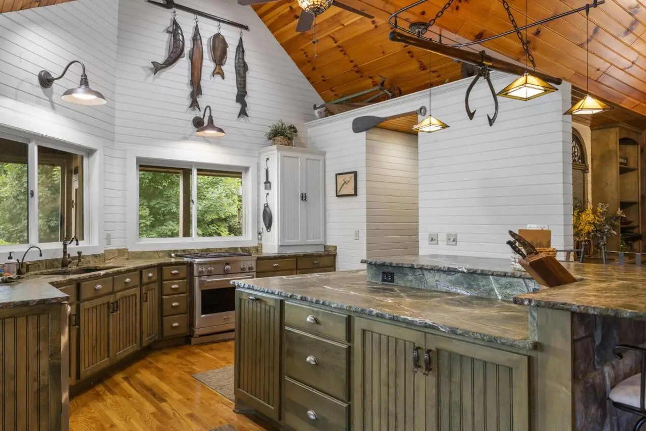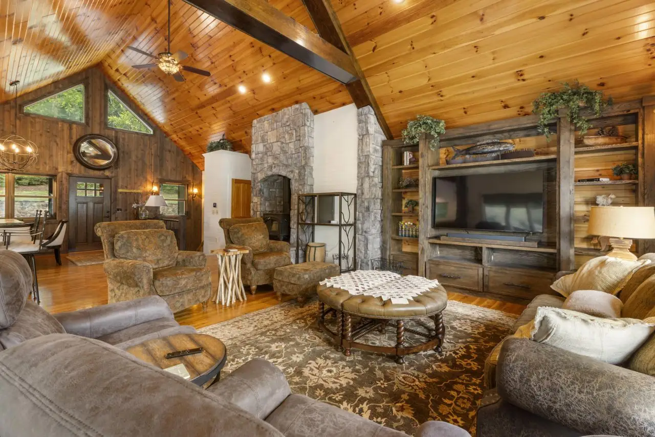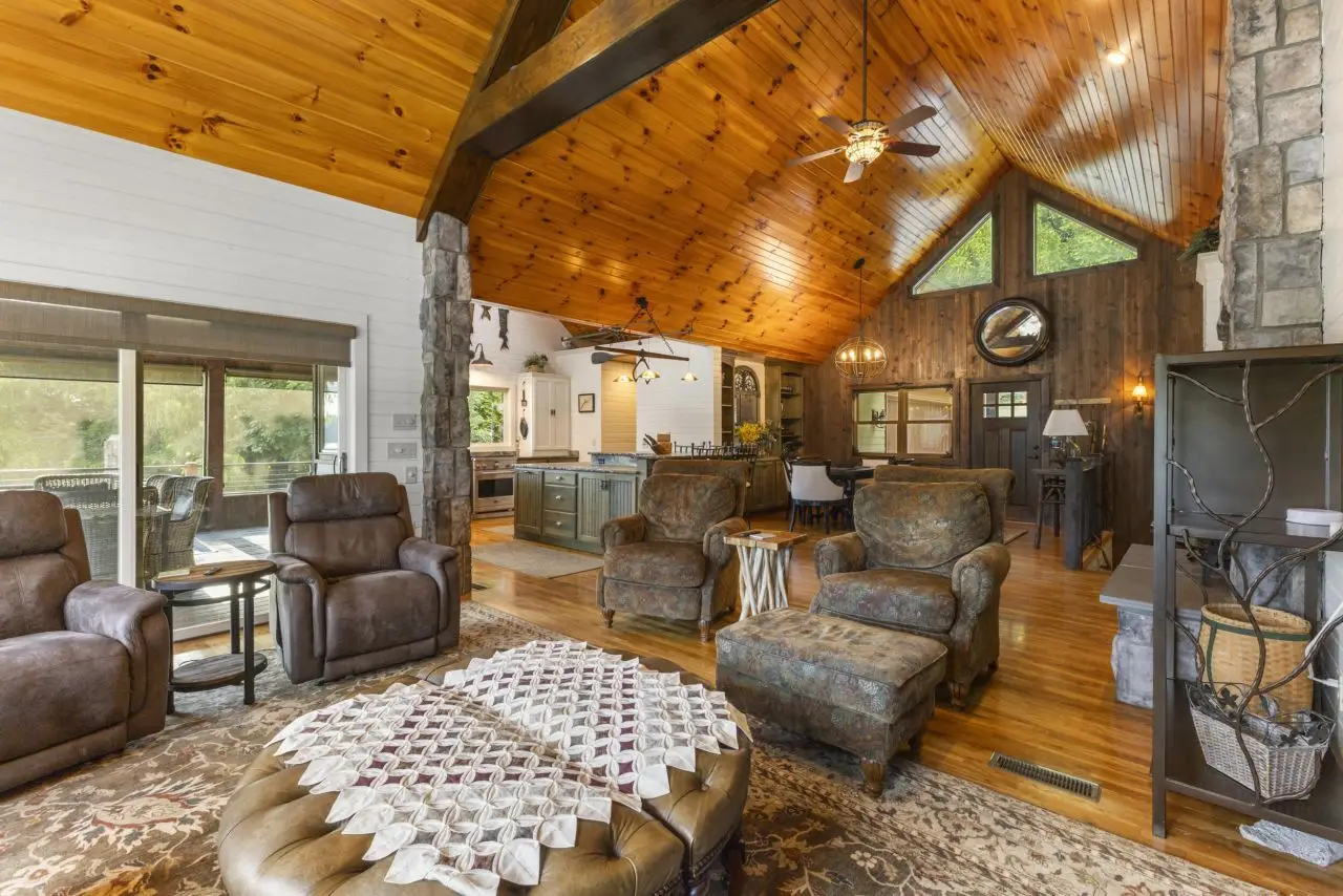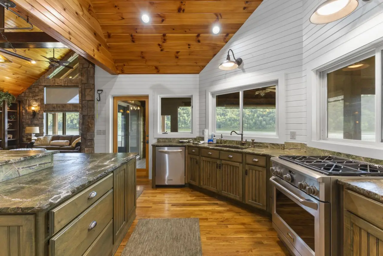 Welcome to 743 Jim Town Rd - Nestled on the serene shores of Cherokee Lake, this one-of-a-kind retreat was masterfully crafted to be a true oasis. From the moment you enter, you're greeted by the warmth of natural textures and awe-inspiring lake views framed by soaring floor-to-ceiling windows. Exposed beams, intricate custom woodworking, built-ins throughout, and a wood stove fireplace create a sense of timeless comfort, elevated by modern ease like remote-controlled electric blinds. Step into the gourmet kitchen featuring chiseled, leathered granite, a Monogram series gas range, custom cabinetry, and a serving pantry complete with a sub-zero refrigerator, a refrigerator drawer and freezer drawer with ice machine, and walk in pantry, hidden by custom sliding doors. The main-level primary suite is a sanctuary with lake views that greet you each morning and a spa-like bathroom that invites you to slow down. Dual vanities, a walk-in shower with body jets, his-and-her closets, and a private dressing room complete the experience. Downstairs is ideal for guests, family, and playful escapes. A generous living area with a kitchenette/bar opens to a guest suite, a children's quarters fitted with custom bunk beds + a full bath, and a secret hideaway perfect for a playroom or bonus sleeping space. Step outside to discover your private lakefront lifestyle. Entertain on the screened porch or open-air deck. Unwind on the lower-level covered patio with a hot tub and gather around the stone fire pit under starlit skies. With 288' of pristine shoreline, your floating dock powered by solar energy, boat lift and jet ski port is waiting on you. A detached 2 level garage provides generous space to house cars, toys, and gadgets. Other improvements include a back up generator, newer roof (2021), and manicured landscaping. A home of this caliber is rarely offered and difficult to replicate. Every detail speaks to thoughtful design and expert craftsmanship. 743 Jim Town Road is truly a remarkable lakefront retreat - one that must be seen to be fully appreciated. Give me a call today to schedule a private tour.