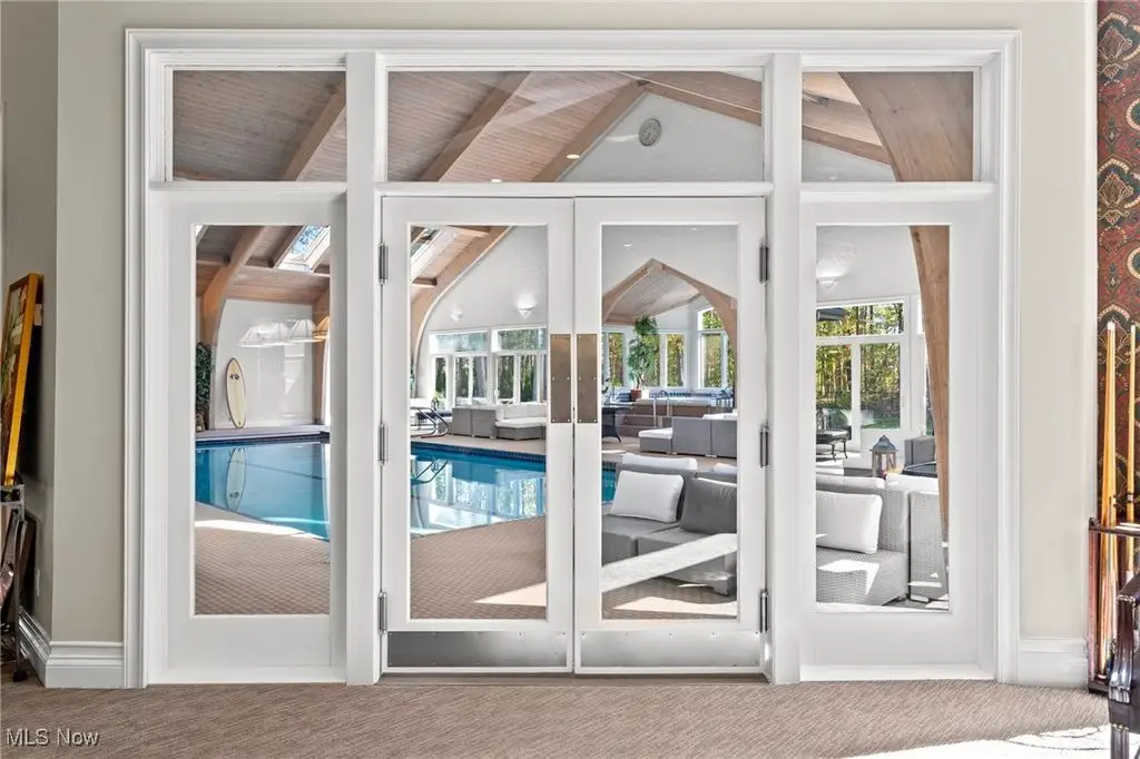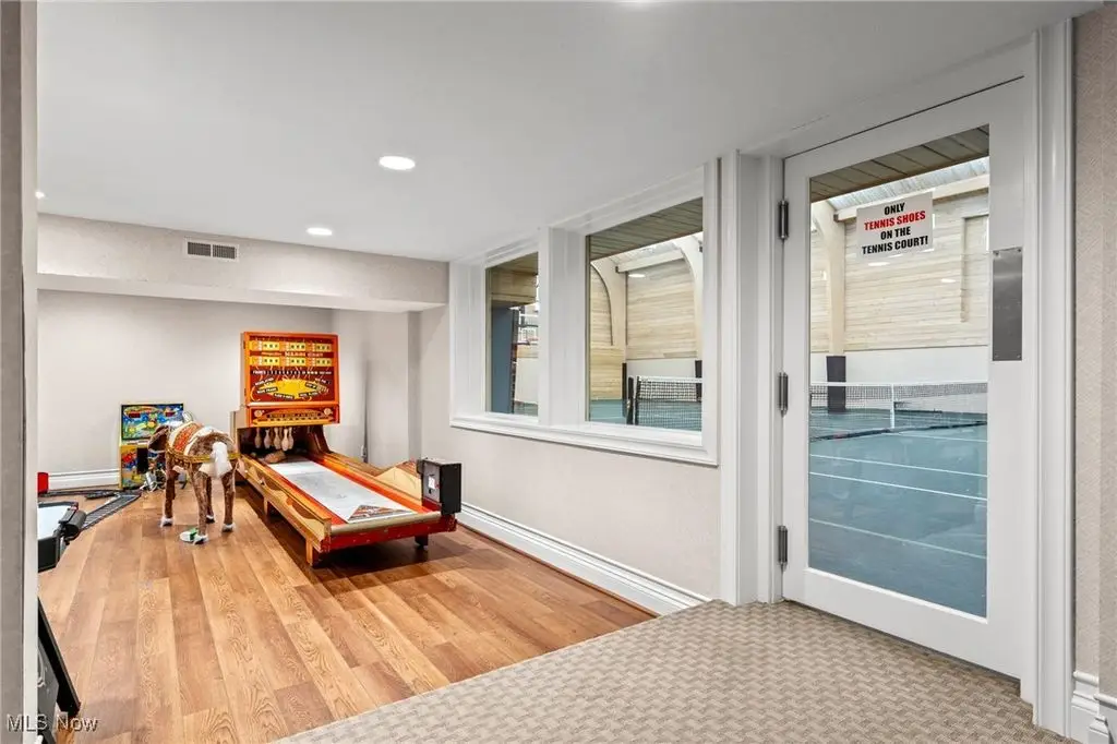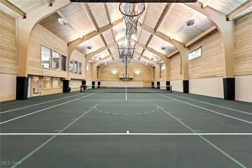 You can feel like you're on vacation 365 days a year in this one of a kind home which was designed for the recreational sports lover! Sited on the most breathtaking wooded lot with a fabulous pond in the front yard, this unique structure is designed for grand scale entertaining and exercising! What makes this special is the one of a kind attached indoor pool complex and the fabulous indoor tennis court/basketball court (and pickleball too!). The living areas in this home are incredible featuring an open floor plan highlighted by a truly spectacular great room area which overlooks both the pool and tennis court. Open to the great room is the fabulous kitchen and dining room area. Here you can entertain in style and ease! There are two huge bedroom suites both with private bathrooms. There is even a finished lower level with additional entertaining and living space. Here you can have a family room, exercise room, hobby room, and more! The unique structure has a 3+ car attached garage, first floor laundry room, and incredible storage throughout. Surrounding the pool area is additional entertainment space, a glass-walled hot tub, and a fabulous built-in wet bar area. There is even an additional full bathroom with a gym-sized sauna. Summers will be enjoyed on the fabulous outdoor patio area which overlooks a wooded wonderland. Truly a one-of-a-kind property!!