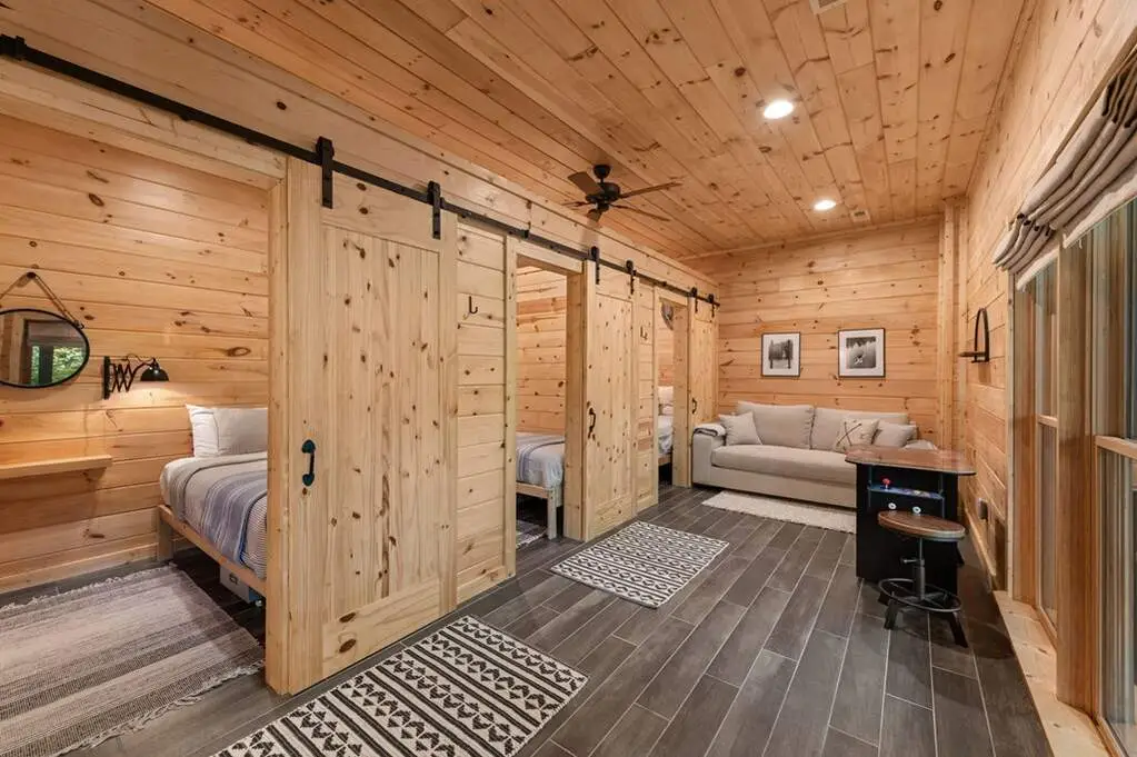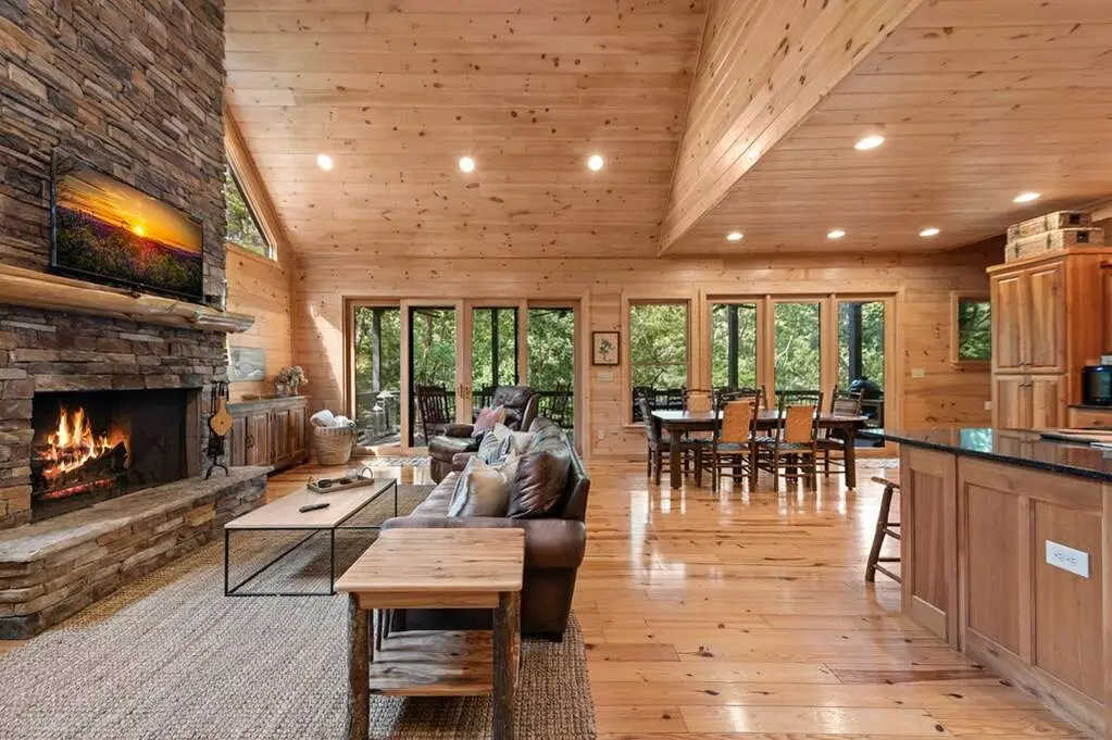 Lake living at its finest! Have you ever dreamed of owning a lakefront getaway that not only provides peace and relaxation, but is also a successful short-term rental? Here's your chance! This stunning, fully furnished cabin on Lake Blue Ridge offers the perfect blend of year-round water access and natural beauty. Spanning four spacious levels, this home comfortably sleeps 8 or more guests, featuring 3 bedrooms and 3.5 baths. The basement level includes a custom-designed bunk room with three private built-in bunks (easily convertible if desired). With decks on every level, there's no shortage of outdoor entertaining space to enjoy lake views, dining al fresco, or simply relaxing in the fresh mountain air. Follow the beautifully crafted steps down to your own private two-story dock, offering space for two boats, plenty of storage, and easy access for swimming, kayaking, and fishing. Whether you're seeking a turnkey investment property, a personal retreat, or both, this property delivers.