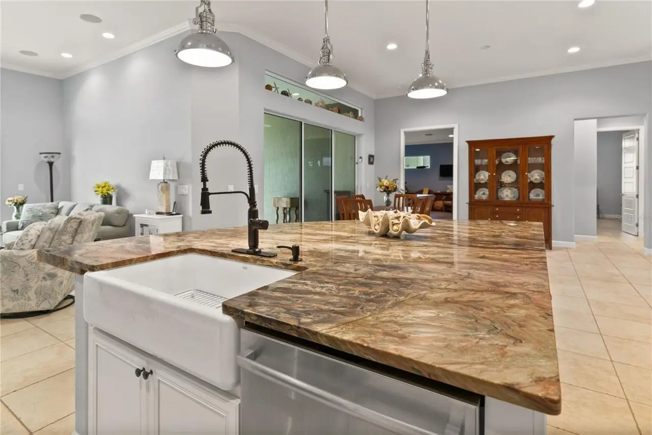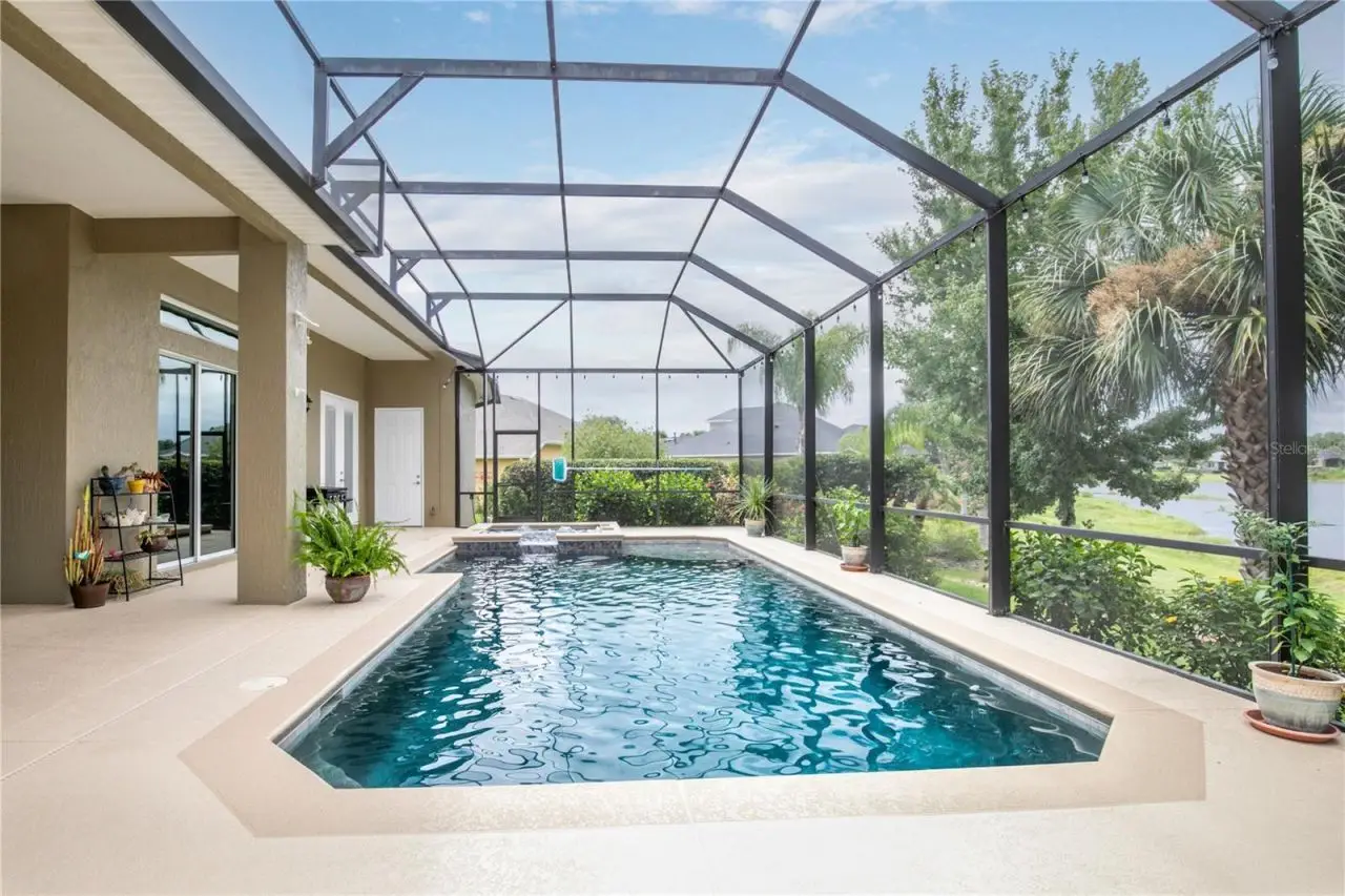 Welcome to your dream home nestled on a serene waterfront lot, where luxury meets functionality. This custom-built residence boasts exceptional features designed for comfort and sophistication. Key Features Include: Solar Heated Saltwater Pool and Jacuzzi: Enjoy year-round swimming and relaxation in a pristine, environmentally friendly pool and jacuzzi. Large 3 Car Garage: Includes an electric attic lift for additional storage, catering to automotive enthusiasts and ample storage needs. Custom Built with High-End Finishes: Featuring built-ins, high ceilings, and elegant crown molding throughout. State-of-the-Art Chef's Kitchen: A culinary masterpiece with unique fusion granite countertops, top-tier built-in cabinetry, and professional-grade appliances. Entertainment Spaces: Bonus room designed as a stylish man cave with a built-in bar, adjacent half bath, and sliders offering pool and lake views. Deluxe Primary Bedroom Suite: Highlights an oversized custom his and hers closets, French doors opening to the pool area, and a luxurious ensuite bathroom. Spacious Guest Suite: Includes a guest suite with a built-in Murphy bed, ensuring comfort and versatility. Additional Features: Massive guest bedroom would make an ideal space for an in-law suite if desired. Whole House Generator and Enhanced Security: Ensuring peace of mind with reliable backup power and advanced security features. This exceptional property combines luxury with practicality, offering unparalleled amenities for discerning homeowners. Experience waterfront living at its finest with every detail meticulously crafted for your comfort and enjoyment. The Lakes of Mount Dora, which is seen by many as one of the premier 55+ communities in all of Central Florida, has many amenities for your use, including a 18,000 sq ft club house that offers a large library room, billiard room, arts/craft room, card/game room, and fitness center along with a social hall where many events and activities are held. Plenty of clubs for those who like to be social. Outside the clubhouse, you'll find a resort-style pool with hot tub, walking trails, bocce ball and croquet lawn, pickle ball and tennis courts. In addition to all this, your monthly HOA fee also includes cable and internet, gated RV/Boat parking, and reclaimed sprinkler water. 10 minutes away is the picturesque town of Mount Dora with all the festivals, quaint restaurants, unique shops, gorgeous sunsets over Lake Dora, boat tours, etc., there is something for everyone! Less than an hour from Disney/Orlando. When you see it you will love it! Call for more details!