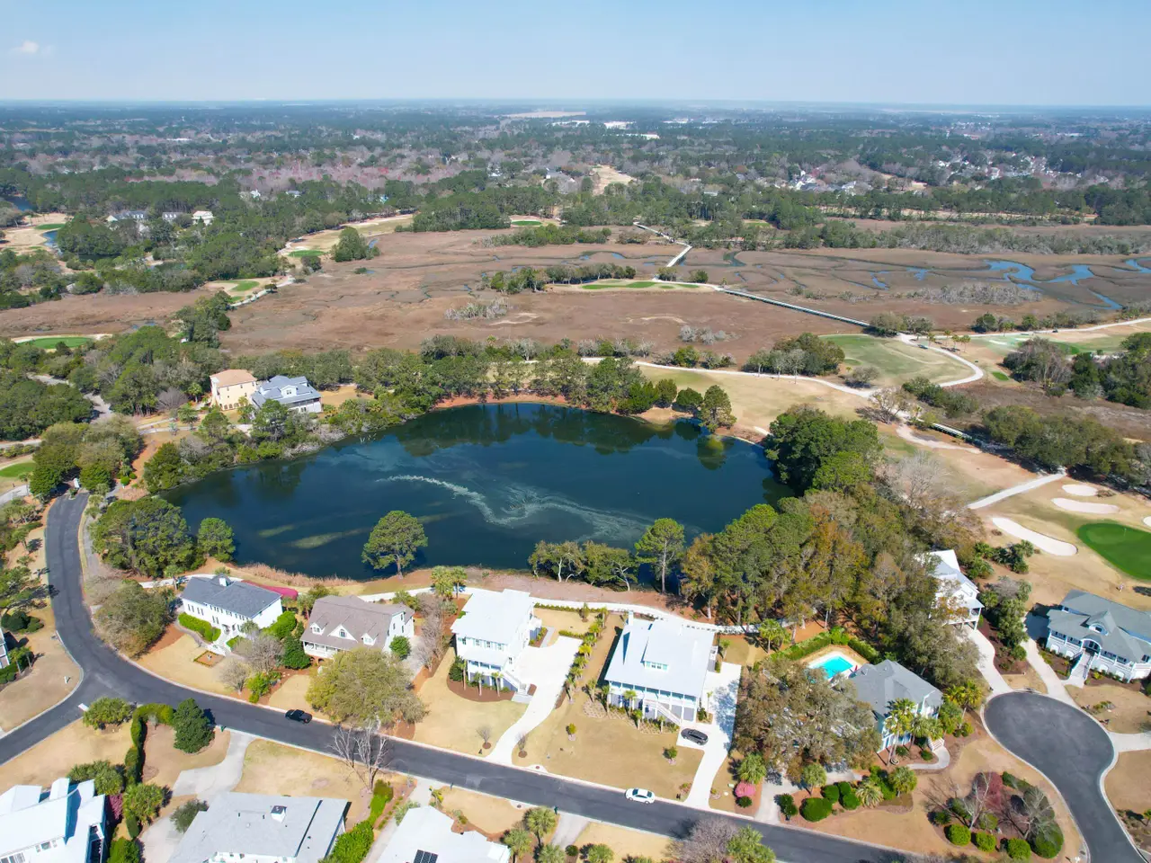 NEW CONSTRUCTION! Nestled in Victory Point, an established and quaint gated community of only 27 homes in Charleston National, this exquisite custom-built home is truly a work of art...a rare opportunity to own a home with the fine quality and unmatched craftmanship that Brier Inc is known for. The location is ideal, offering the privacy and serene setting you desire while being minutes away from downtown Charleston and the beaches of Sullivan's Island and Isle of Palms.Water views abound from this home with a marsh view out the front and a golf course and lake view from the rear. Only discerning buyers will notice the quality craftmanship and finishes this home offers. As you step into the foyer, you will be captivated by the floating antique wooden beams reclaimed 1920'sProhibition Era Boston Beer Racks, setting the tone for the exquisite craftmanship throughout. The kitchen is a chef's delight, featuring Thermador Professional Series appliances, custom cabinetry and a massive island with storage galore. The island is equipped with a 45" sink that takes functionality to a whole new level with dual level attachments that convert your kitchen sink into a full-fledged workspace. If that's not enough, there's an extra-large walk-in Butler's Pantry featuring antique reclaimed circle-sewn countertops and an additional Blomberg refrigerator/freezer. Extending from the kitchen is a large dining room offering abundant natural light and spectacular views of the lake and golf course on three sides. The family room is highlighted by a gas fireplace accented by a 75" Samsung Frame TV and flanked by custom built-in bookshelves. Three sets of glass French doors open from the living room to the back porch featuring a custom built-in Broilmaster Grill for outdoor grilling and entertaining. Your guests will love to powder their nose in the charming ½ bath, adorned with designer wallpaper and a floating vanity. Completing the main level is a large bedroom with an ensuite bathroom and walk-in closet. Whether you take the stairs or the 3-stop elevator, the spacious upstairs primary suite is sure to impress. With breathtaking views of the lake and fairways, the bedroom also features a covered walkout deck with IPE flooring panels and cable railing, overlooking the serene setting. The primary bath includes dual vanities, a beautiful soaking tub, an oversized walk-in shower, a wall of custom cabinetry and an exceedingly large walk-in closet. The 3rd and 4th bedrooms each have ensuite baths and walk-in closets. What's behind the walls of this well-constructed home is quite impressive - 2' x 6' exterior framed walls, impact windows, spray insulation, efficient heating and cooling system, tankless water heater with recirculating hot water, and a 50 year architectural shingled roof. Brier Inc.'s uncompromising commitment to quality construction is in every aspect of this home. Other fine features include designer lighting and hardware, ship lap, a premier home audio system, RING security system, and gorgeous tile throughout. The 3-car garage level is spacious enough for a workshop, extra storage, a golf cart, or multiple cars and opens to a custom lakeside patio with a built-in firepit and seating. Homes of such high quality and location rarely come available!