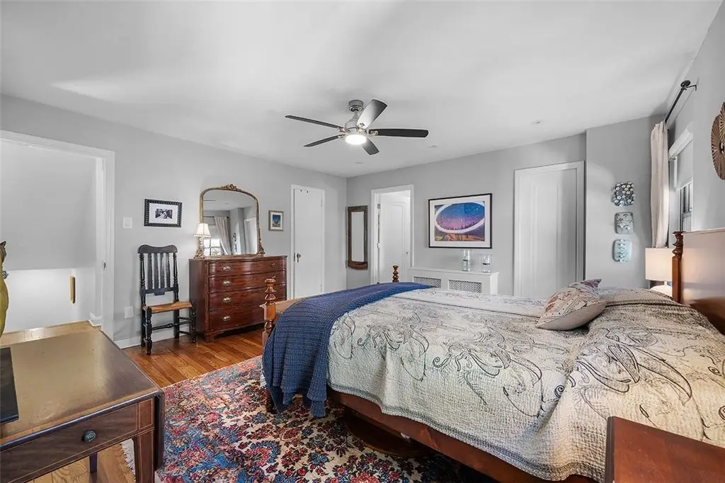 Charming brick Tudor sitting on a picturesque brick street offering 3 finished lvls of living space. Sun-filled rooms & timeless details include a 12' wdw seat tucked in a bowed LR wdw, HW that continue upstairs & wood-burning frpl. Pocket doors from LR lead to open concept DR & kit w/peninsula, isle & quaint corner desk- perfect for coffee or baking station. Sizeable family rm extends off the kit/DR highlighted by a huge triple window looking out to private, flat yard plus French door leading to 23x13 covered patio- ideal for outdoor entertaining. 3 comfortable 2nd lvl bedrms, including a primary ste w/updated en suite, 2 walk-in closets & 16x7 bonus space. Crisp white hall bath & sunny 12x6 den complete 2nd lvl w/landing leading to easily accessible 3rd floor w/bright & roomy 4th bedrm. Convenient powder rms on main & LL. Centrally located near schools, Uptown, shops & dining, this home combines character, comfort & convenience in one of the community's most desirable neighborhoods.