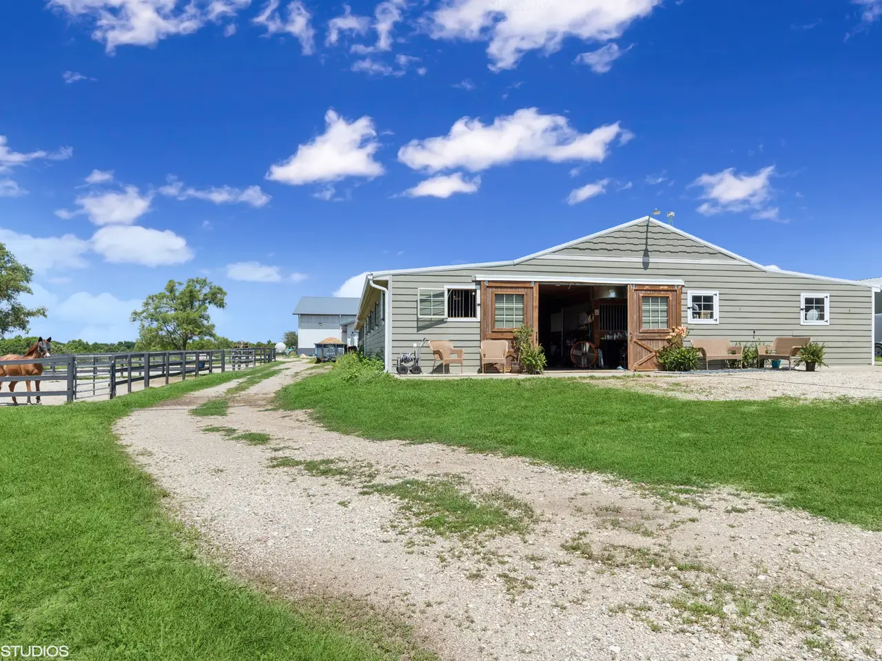 Stunning State of the Art Equestrian Facility on 15 beautiful acres with Ag Zoning! 21 stall, heated stable connected to BRAND NEW indoor riding arena (Morton Building 80x200x16) with GGT Equestrian Footing for elevated performance and safety. Brand new Viewing Room (Heated & AC), Tack Room, Wash and Farrier Stalls, Heated Laundry and Bath Rooms. BRAND NEW Outdoor Riding Arena (100x200) with sprinkler system and GGT Footing. Bunk House to sleep 5 with break room and kitchenette. Metal Hay Barn (40x60). 7 Grass Paddocks and 2 All-Weather Paddocks. Completely upgraded infrastructure-new well, septic, electrical and retention ponds per county code. PLUS a beautiful updated RANCH style home for yourself or your trainer/manager with fully finished basement with bedroom/bathroom! Don't miss this exquisitely updated farm where every detail has been thought of! Dreaming of your own ranch? THIS is the ONE! Located 30 minutes from O'Hare Intl Airport