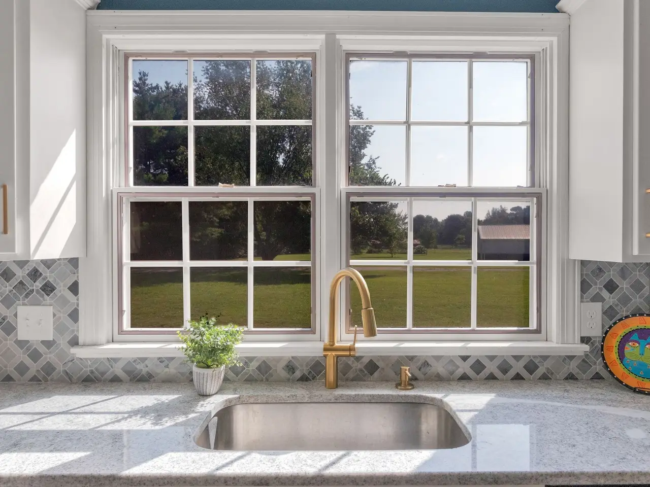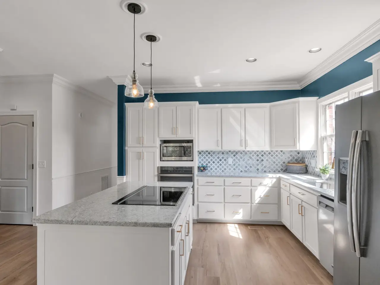 Renovated kitchen with white cabinets