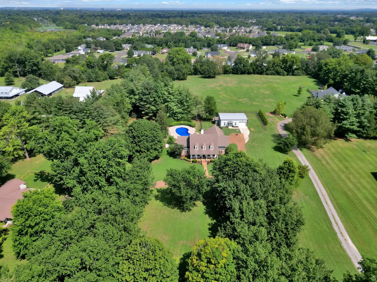 Welcome to 2329 & 2325 Irby Lane, a UNIQUE and HARD to find TWO home property! The renovated Main house has a primary suite downstairs and one upstairs, a real dining room and office or sitting room. 26 mature trees line the circular drive leading up to the Southern Living front porch! The 2 entrances are flanked with stately brick columns and wrought iron fencing all on 2.38 acres with a heated in-ground pool. Masonry and brick fence provide privacy for back yard. Huge TREX deck to enjoy . Primary suite down has new modern shower and large soaking tub and a closet that is big enough for furniture or your own design! Kitchen has white cabinets and new countertops and backsplash. Appliances 4 years old**Fresh paint**New plumbing and light fixtures, LVP flooring, too many renovations and improvements have been made in the last 4 years to mention here. 2 bedrooms up and a finished storage/craft room in addition to the 4th bedroom up with Private bath and sitting room that can be a second primary suite. ***Now, the 4 year old second home is an 860 ft barndominium with 1 bdrm, walk-in shower, great room, dining area, screened in porch and oversized garage perfect for a rental, or family needs. NO HOA! MINOR RENOVATIONS STILL IN PROGRESS ON MAIN HOUSE** Call agent for more details on this one of a kind find in the heart of Murfreesboro!! NOTE*black chain fence to the right of 2nd home and back property line belong to owner on back property. Home originally permitted for 3 bdrms, seller has new permit for 2nd home.Seller will need a 2 hour notice on 2nd home as it is occupied temporarily ( family with new baby). Buyer or buyers agent to verify information important to them such as taxes, etc. Agent is related to seller.
