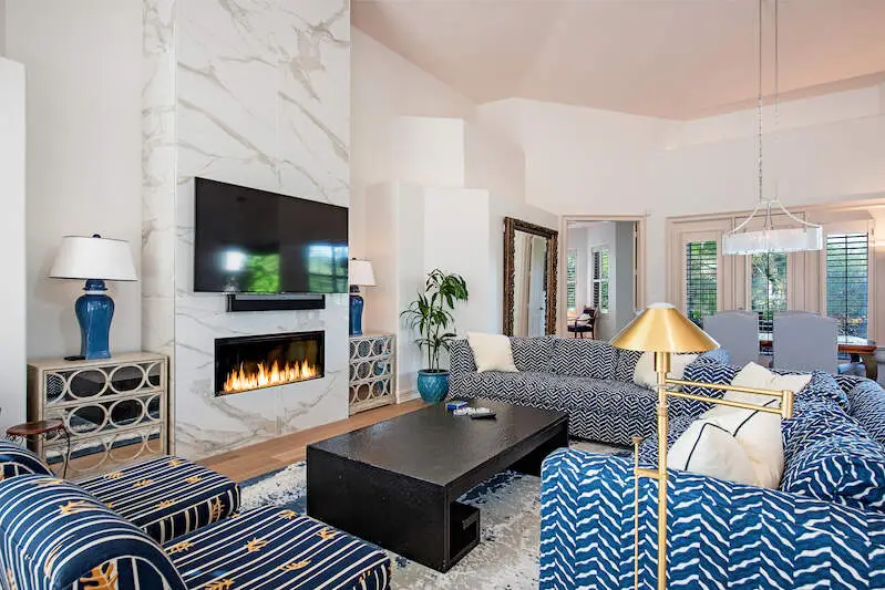 Marble-faced fireplace
