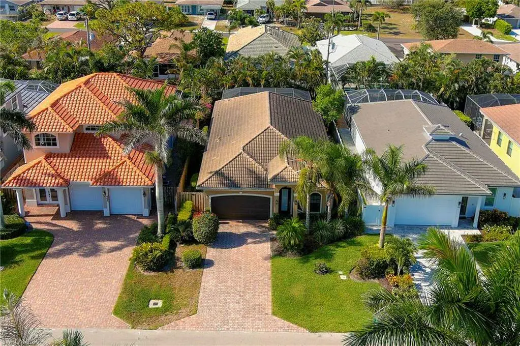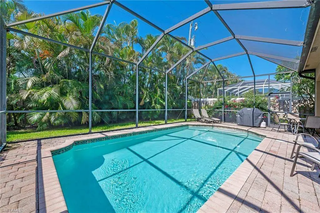 What are you waiting for? Significant price reduction and being offered turnkey furnished-this 3-bedroom plus den, 3-bath home with a two-car garage and screened pool is ready for you. Located in the sought-after 500 block of Naples Park, this move-in ready property combines quality finishes with a prime location just a short walk or bike ride to the beach to enjoy the beautiful sunsets. Inside, you'll find high ceilings, porcelain tile throughout (no carpet), and a gourmet kitchen with stainless steel appliances, granite countertops, and an oversized breakfast bar. The expansive great room is perfect for gathering, while solid wood doors, impact glass windows and doors, and a brand-new AC (2022) add comfort and peace of mind. The primary suite and guest rooms are spacious, with well-appointed baths. Step outside to a pavered, screened pool deck surrounded by lush landscaping and a fully fenced backyard-offering privacy and a perfect retreat. No HOA fees, Flood Zone X (no flood insurance required), and surrounded by newer homes with great curb appeal. This home is ideal for a full-time residence, seasonal escape, or investment property with proven rental history and future bookings already in place. Turnkey, upgraded, and in one of Naples' most desirable neighborhoods-schedule a showing today.