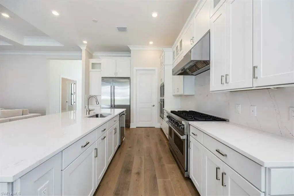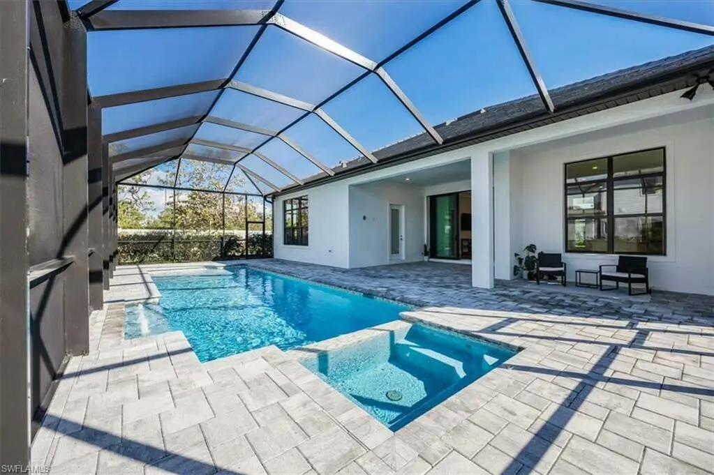 Step into a world of modern elegance and timeless comfort with this breathtaking newly built masterpiece, nestled in the heart of the vibrant gated Ardena community. This isn't just a home-it's a lifestyle upgrade waiting to sweep you off your feet! Unleash your culinary creativity in a chef's dream kitchen, where a commanding 48-inch gas Viking range and oven with a sleek hood ignite your passion for cooking. This dazzling space flows seamlessly into an expansive open dining and living area-your stage for unforgettable gatherings and cherished moments. Retreat to your private master suite, a haven of luxury featuring dual vanities, a chic Roman doorless shower with a built-in seat, a secluded water closet, and a sprawling closet that redefines storage goals. With three inviting bedrooms, a versatile den, and four impeccably designed baths-including one with effortless lanai access-this home blends sophistication and practicality, highlighted by rich wood flooring, a dedicated laundry room, and clever garage attic storage with pull-down ladder. Outside, your personal paradise awaits: a mesmerizing saltwater pool adorned with three enchanting fountains, a built-in hot tub, and dual pumps ensuring crystal-clear perfection. Boosted by outdoor Wi-Fi extenders and smartly prewired for Wi-Fi speakers and a TV to complete your outdoor retreat. Every detail has been crafted for your convenience and joy. This is more than a house-it's your dream escape! Don't wait to claim it! Schedule your exclusive tour today and step into the life you've always imagined!