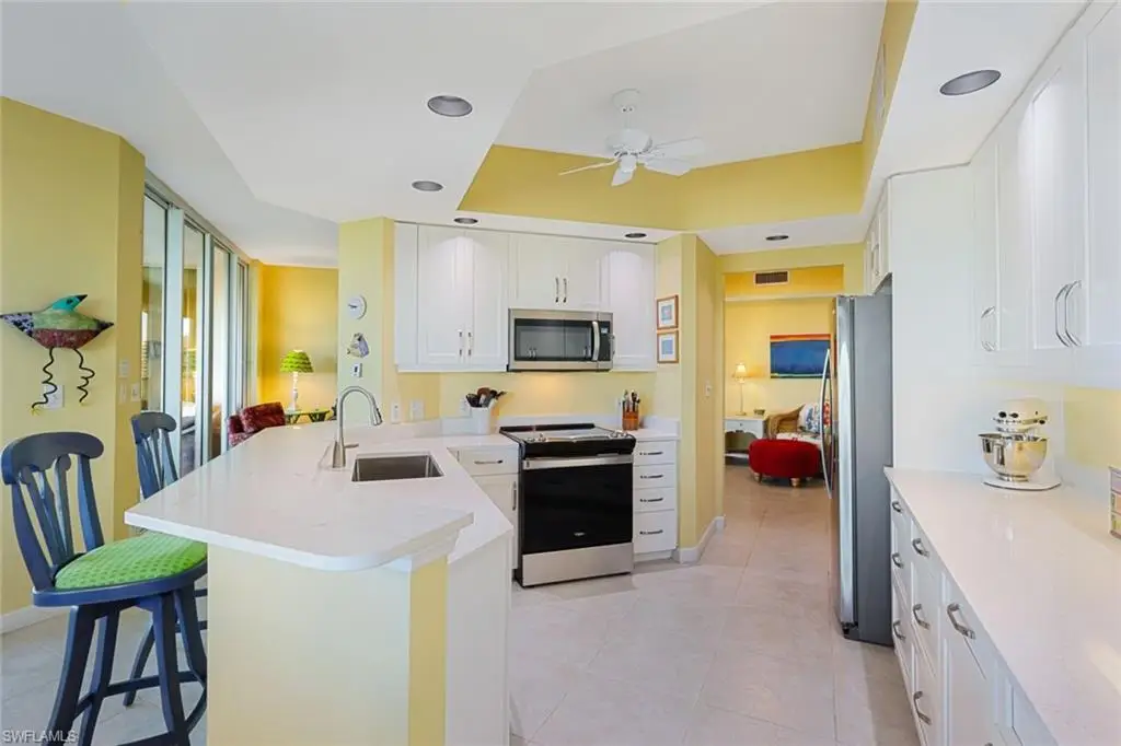 Welcome to your dream 3-bedroom, 2-bathroom coastal retreat, where bright and colorful interiors blend seamlessly with breathtaking water views. This stunning residence offers a resort-style lifestyle, just a short stroll from the beach, with an array of upscale amenities designed for relaxation and recreation. Enjoy spectacular views of Turkey Bay and Gulf from your private lanai, while the kitchen with updated appliances and quartz counters opens to a spacious dining area with beautiful views, perfect for both everyday meals and special gatherings. Step outside and experience resort-style living at its finest. Take a dip in the zero-entry pool, accented by serene waterfalls, or sip cocktails at the tiki bar with covered outdoor dining. Stay active with a state-of-the-art fitness center and a vibrant tennis program in this welcoming social community. After a day of leisure, indulge in an exquisite dining experience at the formal restaurant in the clubhouse, offering exceptional cuisine in an elegant setting. Located just minutes from award-winning restaurants, upscale shopping, and world-class golf courses, this pet-friendly community offers the perfect blend of luxury and convenience. With a short drive to the international airport, this coastal gem is the perfect place to call home - whether as a full-time residence or vacation getaway! Your coastal dream home awaits - schedule a tour today!