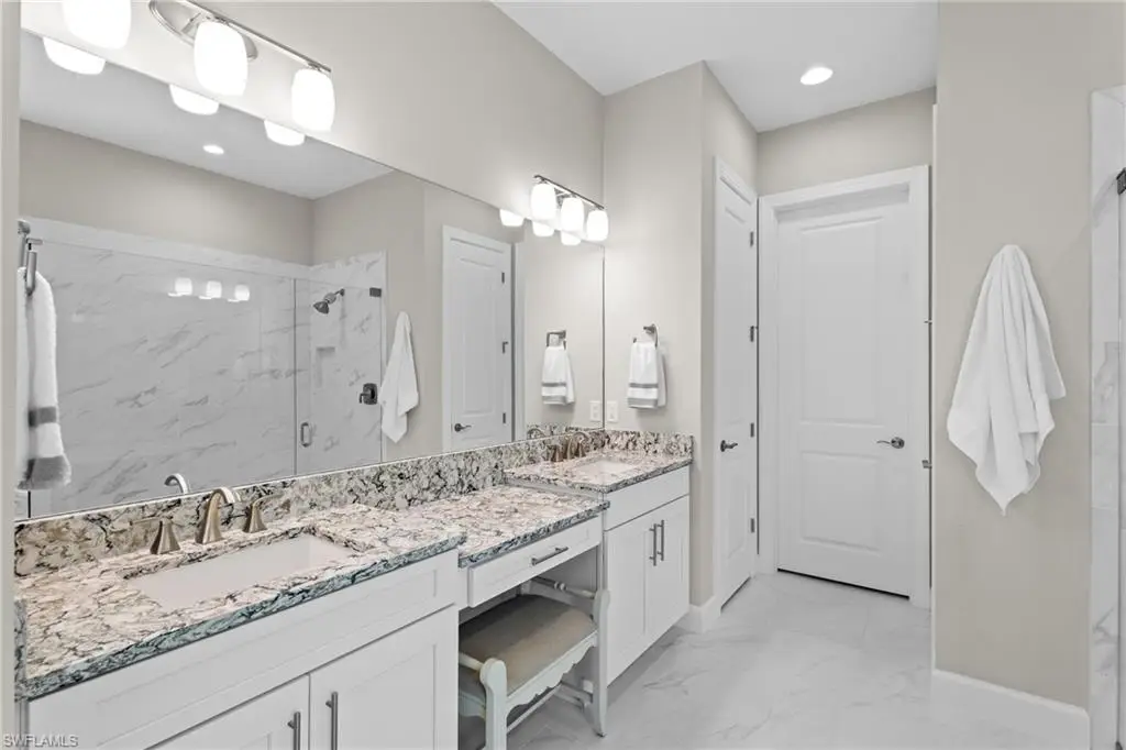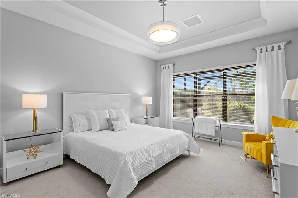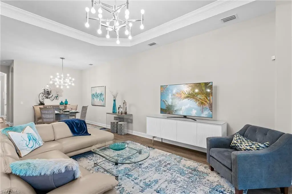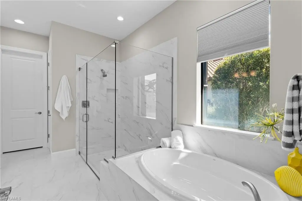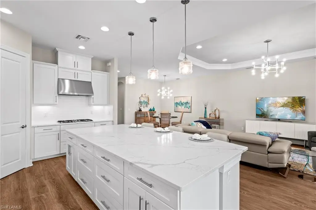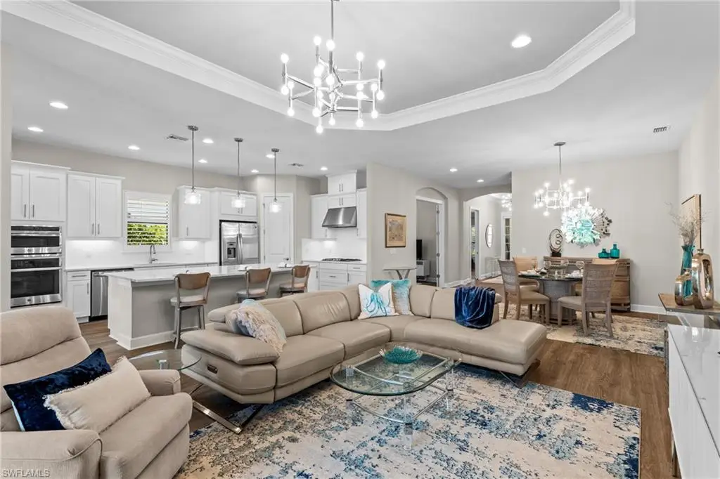 LIVE A VACATION LIFESTYLE IN ESPLANADE! FULL GOLF MEMBERSHIP INCLUDED! Built in 2019, this Lazio model offers a perfect mix of luxury, comfort, and relaxation with its lakefront setting and SOUTHERN rear exposure, which make this home light and bright. The layout, with 3 bedrooms, a den, and 3 full bathrooms has been upgraded with high-end features like the GE appliance package (including GAS cooktop, wall oven, and built-in wall convection microwave), beautiful quartz countertops throughout the kitchen & baths, luxury laminate floors throughout the common areas & den, upgraded sculpted carpet in the bedrooms, and more. The spacious open great room flows out to an extended covered lanai through two sets of sliding glass doors, with dedicated outdoor living and dining areas (pre plumbed for an outdoor kitchen with gas, water, and electric - ideal for entertaining. The GAS and SOLAR heated saltwater pool with two water features and picture window screen cage framing wide and long lake views, making this space both relaxing and ideal for social gatherings. The primary suite offers a spacious bedroom with three windows overlooking pool & lake, luxurious bath with soaking tub and walk-in shower with frameless glass shower enclosure, and large walk-in closet. There are also many added features such as a WHOLE HOUSE GENERATOR, ELECTRIC MOTORIZED ROLL DOWN HURRICANE SCREENS ON THE LANAI, roll down and accordion style hurricane shutters on all windows, three tray ceilings, enhanced landscaping, upgraded Voss bathroom/shower fixtures, and more! The EXTENDED AIR CONDITIONED GARAGE (24X20) with epoxied floor and the large laundry room with cabinetry only add to the home's convenience. Esplanade Golf & Country Club of North Naples offers a true Lifestyle Community with world-class amenities, including a resort pool with cabanas and the popular Bahama Bar, tennis, pickleball, bocce, a 14-mile network of bike/walking trails, and an 18-hole private golf course. The impressive 15,000 Sq Ft clubhouse features a restaurant, bar, wine-tasting room, wine lockers, and a Starbucks-style cafT. Best of all, the property's landscaping, irrigation, golf membership, and all community amenities are covered under a quarterly fee of just $3,412 no additional fees or memberships required! Don't miss your opportunity to own this exceptional home in one of Naples' most sought-after communities. Schedule your tour of this stunning home and Esplanade Golf & Country Club today!