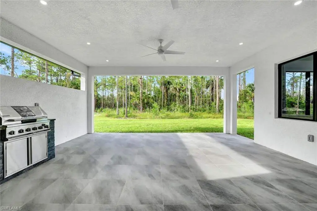 This property is 100% uplands and sits in an exceptionally prime location just off Wilson Boulevard. Surrounded by other beautiful homes, it offers the perfect setting to build your dream residence in one of the most desirable areas of Golden Gate Estates. Inside, the home showcases a stunning modern kitchen with sleek white upper cabinets and warm wood-tone lowers, creating a sophisticated two-tone design. Expansive quartz countertops with waterfall edges and a full-height designer backsplash add a touch of luxury, while the oversized island with a contemporary gold pull-down faucet blends style and function. High-end stainless steel appliances, recessed lighting, and a minimalist pendant fixture complete this bright, open space-perfect for everyday living and entertaining. The master bathroom is equally impressive, featuring floor-to-ceiling tile, a luxurious free-standing tub, and dual showers, creating a spa-like retreat within your own home. The home also boasts a huge outdoor lanai with a fully equipped outdoor kitchen, ideal for gatherings and enjoying the Florida lifestyle year-round. A thoughtfully designed residence that balances modern elegance with timeless comfort in an exceptional location.