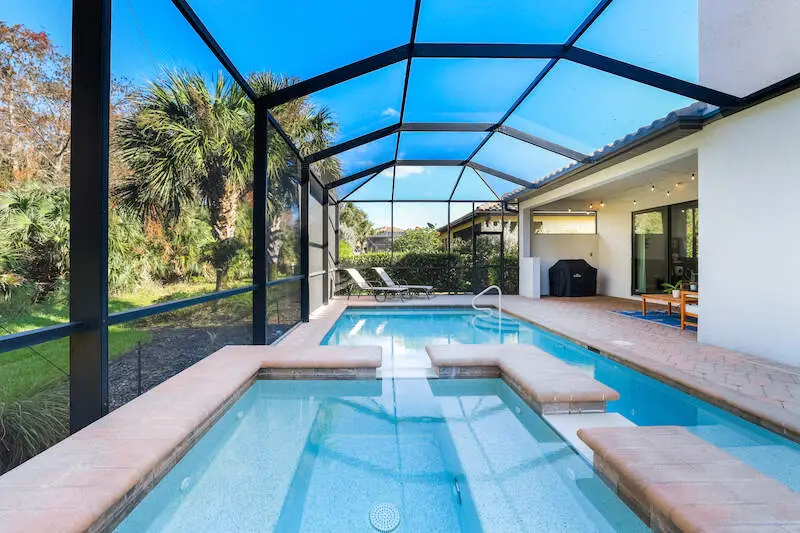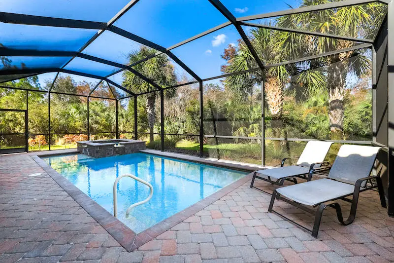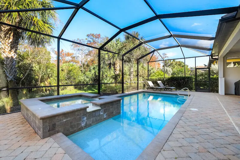 Welcome to 4167 Raffia Drive in desirable Raffia Preserve! This retreat is on a large, private lot at street's end with only one neighbor and no through traffic. The exceptional property is one of the coveted WCI-built homes within the community. WCI has been renowned for both build quality and design, and this home a perfect blend of luxury, comfort, and functionality. Featuring ten-foot ceilings and spacious living areas, the home is designed for entertaining and everyday relaxation, alike. The gourmet kitchen is a chef's dream, with spacious center island, granite countertops, Whirlpool stainless steel appliances, and generous wood cabinetry. The expansive master suite includes a customized walk-in closet, abundant "secret storage", and a spa-like ensuite bath, providing a personal retreat. Large impact-resistant windows invite copious amounts of natural light and showcase views of the beautifully landscaped backyard. Audio and video enthusiasts, you will be delighted to find the great room and upstairs guest suite/bonus room both wired for surround sound. The home includes many other great upgrades, too, like vast cable and ethernet connections, a central vacuum with kitchen sweep pan, and in-wall pest control. Love fresh air and sunshine? Enjoy good times on the lanai relaxing by the heated pool and spa, which is perfect for outdoor gatherings. Plus, electrical and plumbing is installed and waiting should you choose to add an outdoor kitchen. Located in a gated community with resort-style amenities - clubhouse, pool, fitness center, and more - this home boasts a location very close to the clubhouse and community entrance for your convenience. And, you are also just minutes from world-class dining, shopping, and beaches. Come experience the best of Naples living at Raffia Preserve!