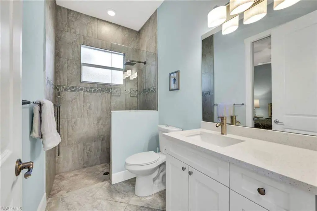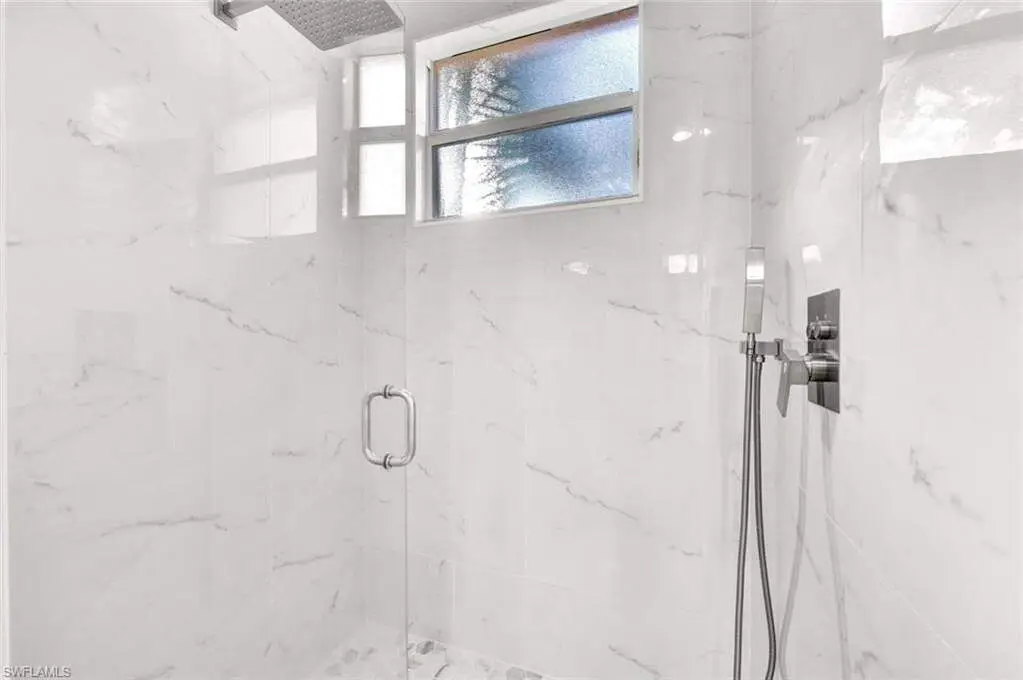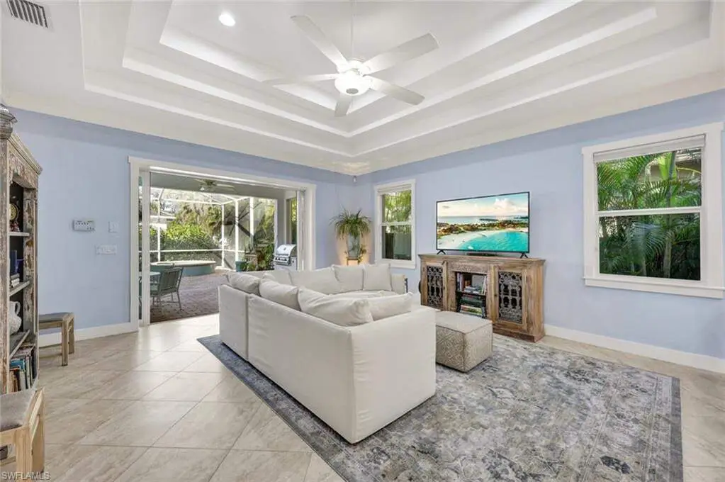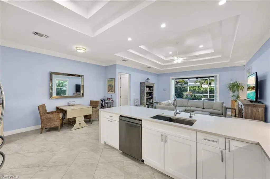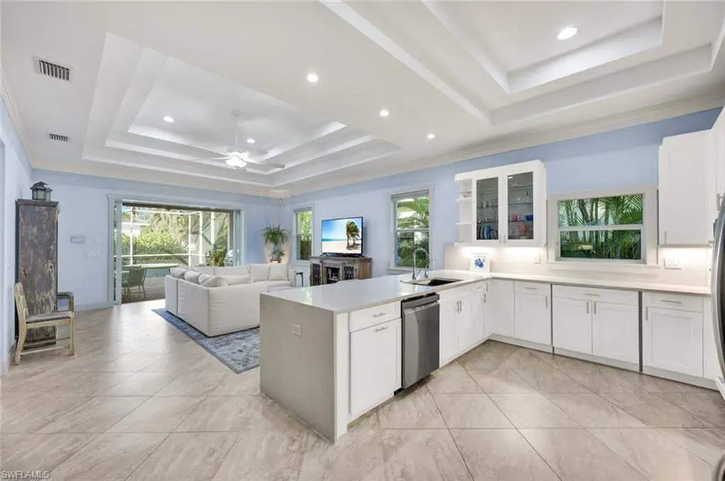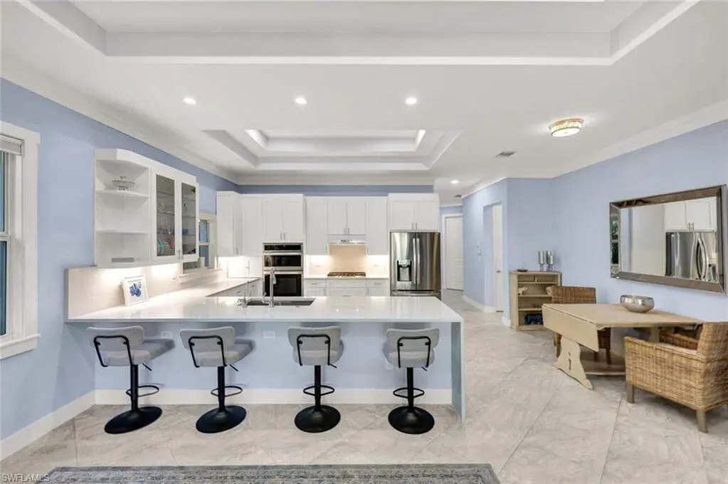 Exceptional 3 bedroom PLUS DEN & 3-bathroom is well appointed with high-end finishes and nearly 2,000 square feet of sophisticated living space - every corner invites you to relax and unwind! Open concept and high ceilings throughout create an expansive, open feel. Dramatic double Tray ceilings in the kitchen, living room, and primary bedroom add architectural elegance. Calming coastal-inspired interior provides a serene, yet refined atmosphere. Newly remodeled kitchen designed with thoughtful details in mind - new quartz countertops with waterfall edge and backsplash, all new stainless-steel appliances and hard-to-come-by gas cooktop. Oversized breakfast bar in the kitchen and pull-out butcher-block island/prep area provide both function and style. Freshly updated primary bathroom is a luxurious retreat, featuring a marble-encased shower room with waterfall showerhead. Versatile den offers more space to easily adapt to your needs. Enjoy seamless indoor-outdoor living with stunning disappearing sliding glass doors to create an unobstructed, open view. Generous sized lanai is enclosed by lush palms, creating a private oasis where you can lounge by the heated saltwater pool and spa, or entertain friends & family in the brand-new summer kitchen, ideal for al fresco dining and gatherings. Seashell pink exterior is complemented by professional tropical landscaping and metal roof, setting the stage for a true Key West-inspired escape. Within walking distance from white sugar sand and clear blue water at Vanderbilt Beach. Shopping, dining, and entertainment options are plentiful at Mercato just minutes away. Indulge in luxury at the nearby world-renowned Ritz Carlton. This location truly provides the best of Naples - all with no HOA fees or restrictions. High & dry in Flood Zone X. Whether you're looking for a full-time residence or a vacation home, this property is a rare find!
