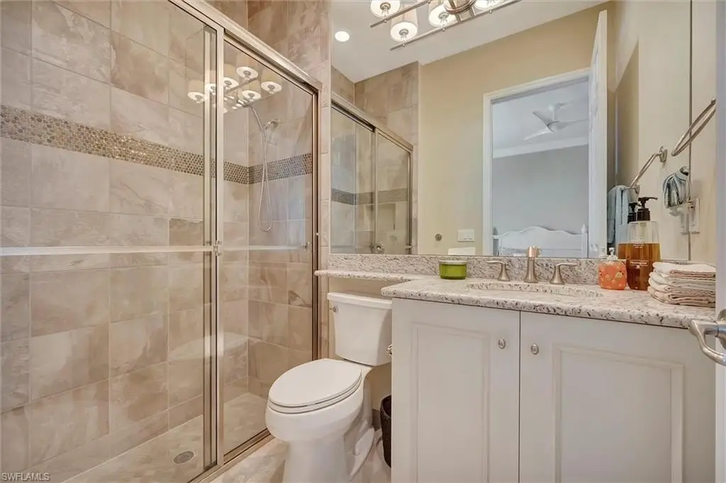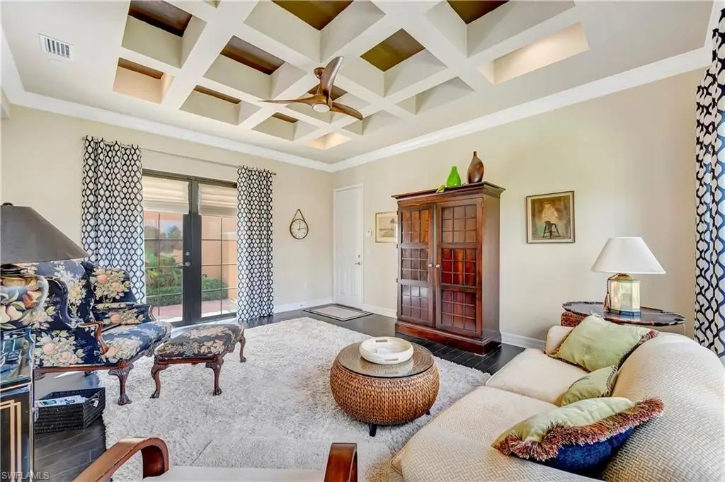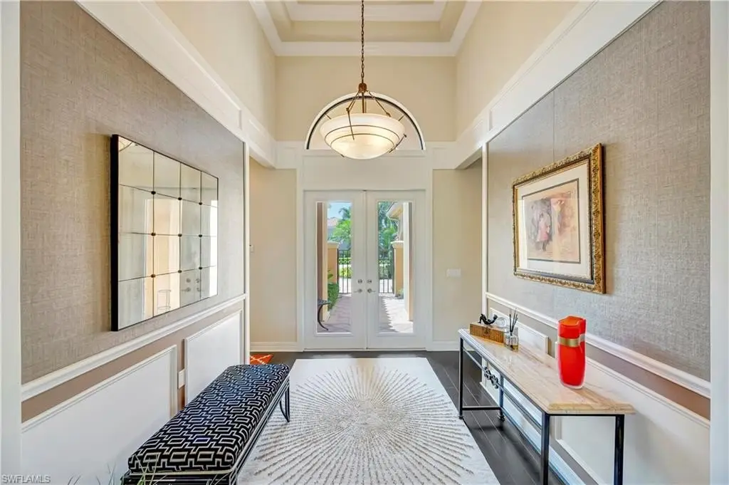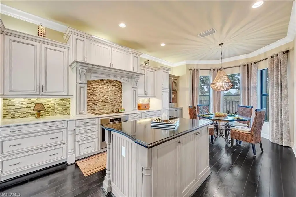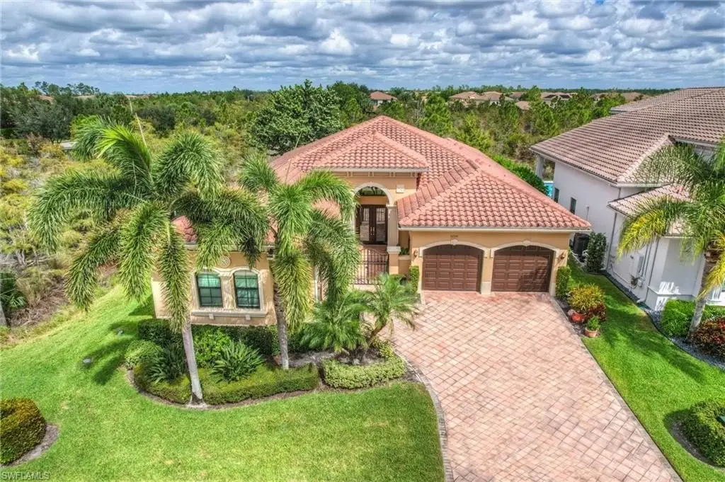 Step inside this beautifully maintained Carlyle floorplan - 3 Bedrooms + Den, 4 Baths- home in the highly desirable Riverstone community, where elegance meets comfort. A gated courtyard entry sets the tone, leading to a spacious great room with a custom wet bar and formal dining area. At the heart of the home, the chef’s kitchen showcases custom cabinetry in creamy tones, light marble countertops, a large center island, and top-of-the-line appliances—perfect for both everyday living and entertaining. The extended screened lanai offers a peaceful setting with manicured landscaping and preserve views. The primary suite is a private retreat with a sitting area, spa-inspired bath, double sinks, walk-in shower, and soaking tub. Two guest suites with private baths plus a large clubroom/optional a den or a 4th bedroom provide comfort and flexibility. Upgrades include wood floors in main living areas, designer tile in baths, plush carpet in bedrooms, tray ceilings, crown moldings, custom wood trim throughout, built-in entertainment center, and custom built-in closets. Impact-resistant windows and doors, two recently replaced A/C systems, and a freshly painted exterior add peace of mind. A spacious 3-car garage with epoxy flooring offers both convenience and storage. Riverstone residents enjoy resort-style amenities including a clubhouse, fitness center, resort pool, tennis, pickleball, and basketball courts—all close to top-rated schools.