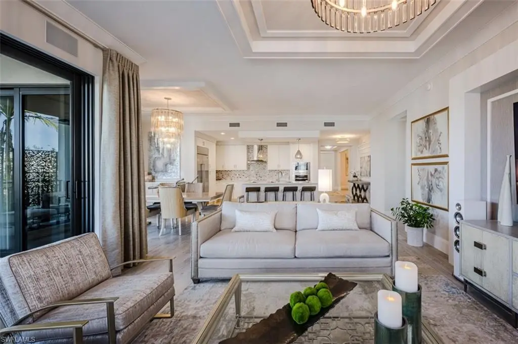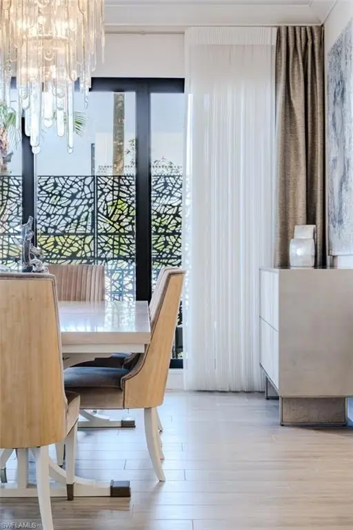 Experience Elevated Living in the Heart of Naples. Step into nearly 2,500 square feet of refined elegance in this stunning former model residence, located in the prestigious Naples Square community. This expansive 3-bedroom + den, 3-bathroom condominium perfectly blends contemporary design with luxurious comfort. Crafted for those with discerning taste, the residence showcases exceptional finishes throughout - motorized Hunter Douglas blinds, custom designer lighting, and a chef's kitchen that's as functional as it is beautiful. Outfitted with premium appliances including Wolf, Sub-Zero, Bosch, and Zephyr, the kitchen features a spacious quartz island, induction cooktop, smart wall oven, and a striking marble backsplash, making it a true culinary showpiece. The open-concept layout effortlessly connects the kitchen, dining, and great room, creating a spacious and inviting atmosphere ideal for entertaining or everyday living. Oversized sliding glass doors lead to a generous terrace with expansive views, creating a seamless transition between indoor and outdoor living. Sophisticated fixtures and modern design elements add warmth and depth throughout the home, while the building itself offers a suite of world-class amenities. Enjoy the resort-style pool and spa, outdoor grilling area, a state-of-the-art fitness center, and an elegant club room with billiards and large-screen TVs. Additional features include one reserved parking space in the secure, lower-level garage, an additional unassigned space, a humidity-controlled storage locker, and covered bike storage. Pet lovers will appreciate the community's welcoming pet policy. Located just steps from the boutiques and fine dining of Olde Naples, the newly built Gulfshore Playhouse, Bayfront, and Baker Park, this residence offers the ultimate in walkable luxury living. Moments from the sugar-sand beaches, this home invites you to embrace the very best of the Naples lifestyle.