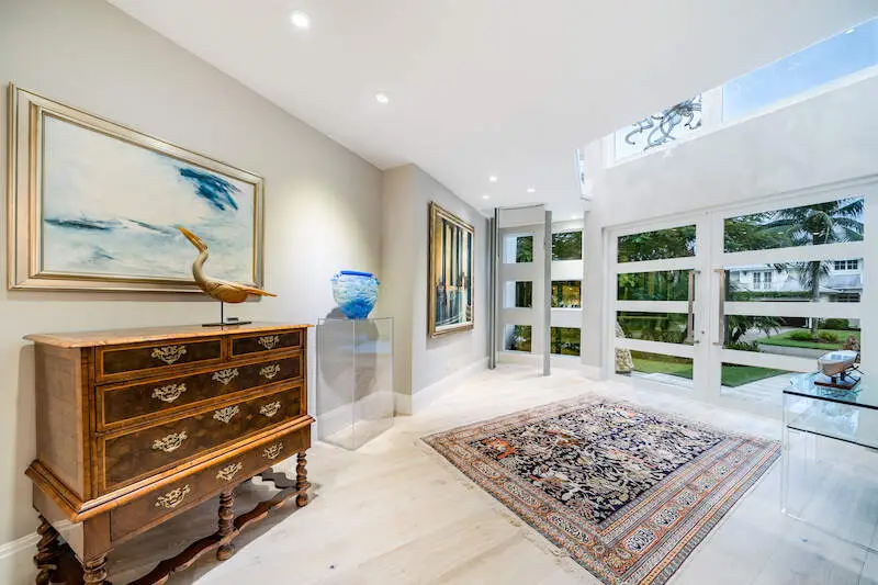 Situated in one of Olde Naples' most sought-after locations, this high-elevation home offers unparalleled peace of mind with NO water damage and lower flood insurance costs thanks to its placement in the X500 flood zone. The property sits on a 14,000+ square foot corner lot with lush landscaping, offering privacy and a perfect blend of luxury, convenience, and coastal elegance. Recently remodeled between 2021- 2023, the home showcases top-tier finishes on par with brand-new construction built in 2022. The front elevation was expanded to include a new metal raised single-seam roof, an open 2-story foyer, glass double doors, and an elevator area. Inside, you will find European French white oak engineered hardwood flooring, soaring ceilings from 12 to 18 feet high, and IMPACT windows throughout. The chef's kitchen is equipped with white shaker cabinetry, an oversized island with black accent cabinetry towards the dining room and luxurious quartz countertops with a waterfall edge, complemented by DACOR 6 burner 2 oven gas cooktop, VIKING microwave/convection oven, and a SUBZERO side-by-side refrigerator. The spacious home includes a music room, large den, open loft space, and an expanded laundry/butler's pantry. The owner's suite occupies its own private wing with a large walk-in closet, extra built-in doored storage & closet system, a bedroom with walls of windows and sliders leading to the private pool and spa. The spa-like bathroom featuring a walk-through shower with multiple shower heads, dual vanities, and a private water closet. Upstairs, the home offers three large guest suites, each with ample closet space, natural light, and balcony access from two of the suites. The exterior features the most thoughtfully mature plantings, trees and flower beds, Bahama shutter accents, LED landscape lighting, and a handcrafted shell-stone driveway and walkway. The covered lanai has new electric rolling "sun and storm" screens, and the pool and spa area are enclosed for added protection. All of this sits just three blocks from the beach, the new Four Seasons, NCH, and all the amenities of Olde Naples. Positioned on a quiet street with no thru traffic, this home is the ideal mix of modern design, top-of-the-line finishes, and the privacy and convenience you have been looking for. WITH NO hurricane damage at all, this home is ready for its next lucky owner.