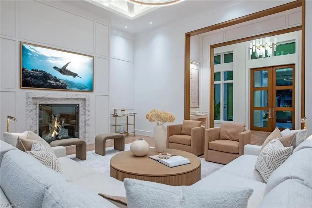 Presenting an exceptional new residence by the distinguished collaboration of Crayton Road Development, Falcon Design, Van Emmerik Custom Homes, and R & Co Designs. Set on a sprawling oversized lot with coveted western exposure, this exquisite home is ideally located in the heart of Coquina Sands - just moments from the pristine beaches, Old Naples, and the highly anticipated Four Seasons Resort. Nestled on the serene Nautilus Road, within a high and dry (X-500) flood zone, this property offers the ultimate in privacy and convenience. Boasting over 5,000 square feet of thoughtfully designed, single-level living space, this residence features 5 generously proportioned bedrooms, 5 full/1 half baths, and a spacious three-car garage. The meticulously curated floorplan ensures effortless flow between the grand living areas, while expansive windows bring the outdoors in, showcasing the lush, tropical landscape that surrounds the property. Designed for the ultimate in entertaining and relaxation, the resort-inspired outdoor living area includes a state-of-the-art kitchen with island, large heated saltwater pool and spa, and an expansive yard - perfect for hosting family and guests. Inside, no detail has been overlooked, from the gourmet kitchen with custom hood and high-end appliances to the service kitchen that provides functional elegance. The home is adorned with beautiful Tavolato Veneto wide-plank oak flooring, intricate millwork, and stunning natural stone countertops throughout. Additional highlights include two elegant fireplaces, generator, and refined ceiling treatments that complement the home’s exquisite architectural details. Designed with luxury and longevity in mind, this property experienced zero flooding from Hurricane Ian or any other recent weather event, underscoring its resilience and premier location. This is a rare opportunity to acquire an unparalleled residence where every finish has been meticulously selected by a team of renowned professionals. An unmatched blend of style, sophistication, and setting, this is truly a masterpiece in the making.