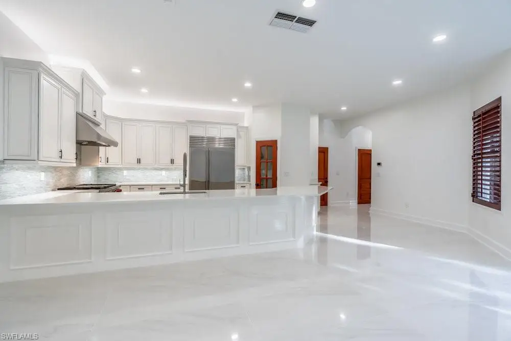 Exceptional Value in the Heart of Olde Naples. Gracefully designed, this home blends refined private living spaces with timeless elegance, all set in an exceptional location just moments from the Gulf, 5th Avenue South, and Crayton Cove. With almost 6,000 square feet of living space, this expansive 6 bedroom, 4.5 bathroom home features soaring ceilings, a private den, library, and a stunning third-floor bonus room perfect for entertaining or relaxing in total privacy. The gourmet kitchen is a chef's dream, outfitted with Sub-Zero and Wolf appliances, dual dishwashers, and a spacious walk-in pantry. A dramatic two-story foyer is crowned by an imported chandelier and leads to an elegant second-floor mezzanine, framed by grand staircase and solid mahogany doors throughout. The private backyard oasis showcases a heated saltwater pool with tranquil water feature, surrounded by lush landscaping and mature trees. From the third-floor terrace, enjoy the impressive birds eye view while watching the City of Naples fireworks. A one of a kind experience from the comfort of your own home. Located in the heart of Olde Naples, within walking distance to Naples' finest beaches, dining, and shopping, this fully remodeled home is move in ready and delivers the best of downtown luxury living. Additional highlights include a garage ceiling height ready for car lift installation and multiple flex spaces including exercise room, family room, and media room. A true Olde Naples gem that combines size, value, and sophistication in one of the city's most coveted neighborhoods. A must see!