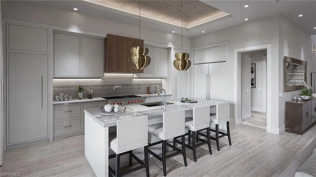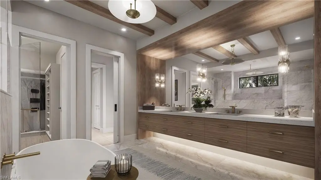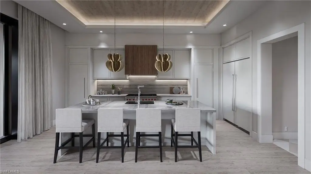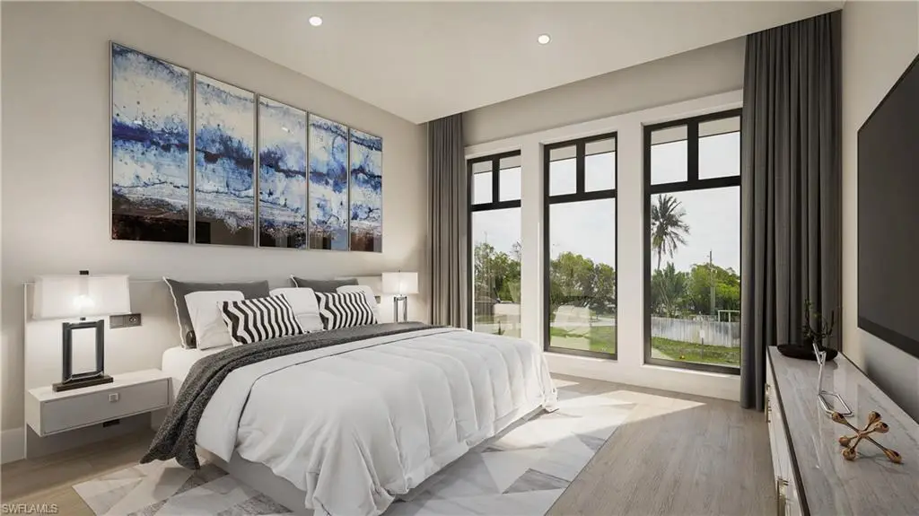 Welcome to 1199 12th Street North, an exquisite new construction in the prestigious Lake Park Community, set for completion in December 2025. Designed by the renowned MHK Architecture and W Design, and developed by Blue Horizon Construction, this luxurious two-story residence features four spacious bedrooms, including a ground-level master suite, and four elegantly designed bathrooms, along with two half bathrooms. The home also includes a versatile study den, perfect for a home office or library. Appointed with high-end finishes, this home boasts European white oak wide plank wood flooring, quartzite countertops, and custom ceiling designs. Experience state-of-the-art living with top-of-the-line Sub-Zero and Wolf appliances that set a benchmark for gourmet standards. Every detail has been thoughtfully considered, exuding comfortable luxury with a flat tile roof, pool and spa, PGT hurricane windows and doors, and an above flood plain two and a half-car garage with upgraded custom doors and a custom paver driveway. The custom wet bar, featuring custom cabinetry adds to the home's allure. This home seamlessly blends functionality with exquisite style, offering a well-appointed bedroom and office on the ground floor, while the upper-level hosts three additional bedrooms paired with a versatile loft - a perfect retreat for family or guests. The built-in outdoor kitchen is perfect for entertaining, and the second-floor covered balcony offers stunning sunset views every night. Enjoy one of the best lake views in Naples, FL from your outdoor heated pool and spa or from the covered balcony, making every moment at home feel like a luxurious getaway. Safety and modern convenience are paramount, with hurricane impact windows and doors, home automation with lighting control, wired security, and surround sound. Ideally located just minutes from downtown Naples' Fifth Avenue South, 3rd Street South, Lake Park Diner, Venetian Village, Waterside Shops, Four Seasons, and Naples' world-class shopping, entertainment, and white sand beaches. This home is less than a ten-minute walk to both Fleischmann Park and Lake Park Elementary.