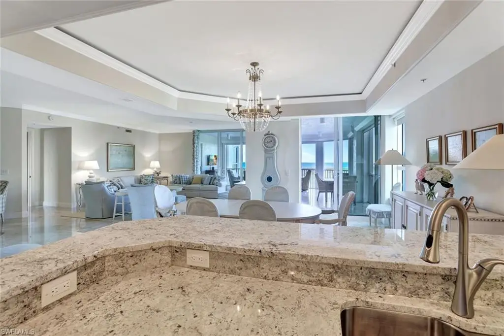 Step into elegance and comfort with this exquisite residence at The Dunes, offering unparalleled luxury and breathtaking views. Enter directly into your unit via a private elevator, where you're greeted by stunning polished marble flooring that sets the tone for sophisticated living. The gourmet kitchen, adorned with light granite countertops, opens seamlessly to a spacious dining area and an expansive great room, creating the perfect setting for entertaining. Boasting 3 bedrooms, 3.5 baths, and a versatile den, this home features a large open floor plan designed to capture natural light and maximize space. The wraparound lanai is a true highlight, offering sweeping views of the Gulf of Mexico and Turkey Bay. From here, enjoy serene moments watching boats glide by and wildlife in their natural habitat. The primary suite is a luxurious retreat with a separate shower, jetted tub, and dual sinks. A second primary suite with its own private balcony provides additional comfort and privacy for guests or family. This residence includes two under-building parking spaces and is located in the prestigious Grande Excelsior building, which offers an array of amenities, including a fitness center, a gas grill area, and a pool with a hot tub. As a resident of The Dunes, you'll also enjoy access to the renowned CLUB AT THE DUNES, featuring a resort-style pool, TIKI bar, and casual and formal dining options. Socialize at the popular Sandbar or take advantage of top-tier fitness facilities with on-site trainers. The community also boasts a full-time tennis staff and an active tennis community. Available for transfer with this unit is the highly sought-after FLORIDIAN CLUB membership, granting exclusive access to a private beach club on award-winning Vanderbilt Beach. The Floridian shuttle conveniently picks you up at your lobby and whisks you away to the beach, where you can enjoy a restaurant, pool, indoor-outdoor seating, and full beach services. The Dunes is PET FRIENDLY, making this a rare gem in Naples condo living. Live the luxury lifestyle with unparalleled amenities in a vibrant, resort-style community. Call for a private showing today!