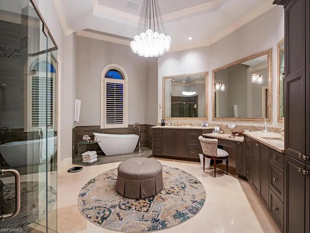 Welcome to Resort Style Living, Welcome to Grey Oaks! Discover an extraordinary property in the highly sought-after Grey Oaks community, where luxury and elegance meet. This stunning residence located on the first fairway of the Pine Golf Course boasts a magnificent pool complete with a spa and captivating water features, all set within an extra-tall screened outdoor space adorned with lush foliage. The zero-corner pocketing sliders seamlessly connect the indoor and outdoor living areas, offering a perfect blend of comfort and sophistication. Inside, you'll find beautiful flooring, high ceilings. and large windows throughout this beautiful home. Entertain in the formal dining room that opens into the elegant living room with a gas fireplace creating a warm and inviting ambiance. The chef's kitchen, featuring a Wolf gas cooktop, a spacious island, and a convenient breakfast bar open to the family room filled with an abundance of natural light. The grand office is complete with floor-to-ceiling built-ins and floor-to-ceiling windows overlooking the pool and lanai. This home offers plenty of room for guests, with two ensuite bedrooms on the first floor and a third guest suit upstairs featuring a loft and wet bar that provide an ideal space for relaxation and entertainment. Guests can enjoy breathtaking views from their private balcony, overlooking the pristine golf course. The master bedroom is a true retreat, featuring a separate sitting area, a luxurious soaking tub, a frameless glass shower, a vanity, and dual sinks. This property offers an unparalleled lifestyle in Grey Oaks, combining elegance, functionality, and exquisite design. Don't miss the opportunity to call this remarkable residence your home. Grey Oaks Country Club is Naples' one and only private club with 54 holes of championship golf. In addition, the club offers an unparalleled array of exclusive amenities, including a newly renovated wellness center, a lagoon-style pool, tennis, pickleball, bocce, multiple dining venues, and a luxurious spa. The amenities are truly endless.