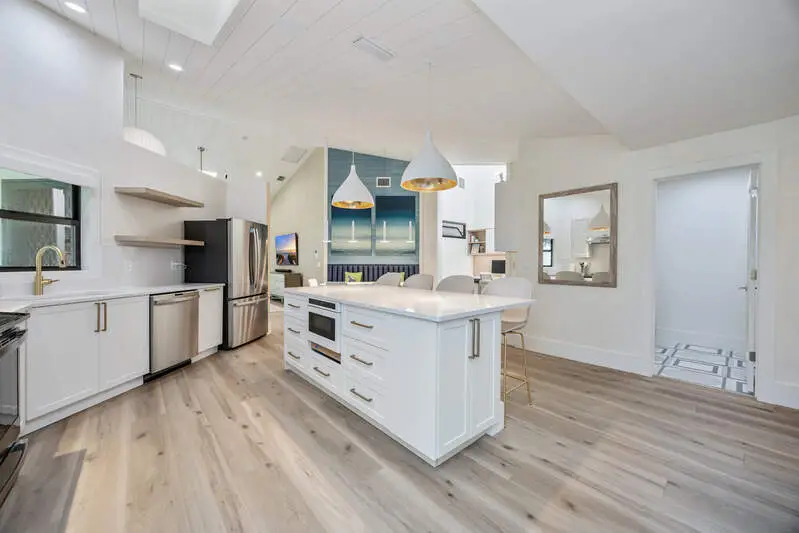 This centrally located, fabulous 3+den residence has been incredibly transformed from floor to ceiling with a stunning selection of finishes and materials. Blending style, practicality, and a touch of playful creativity, this home showcases thoughtful design choices throughout. All major appliances, along with the water heater and AC, have been replaced. New impact windows and doors create a protective core. Other desirable benefits include dramatic floor-to-near-ceiling windows and glass doors, which provide a full view of the backyard and maximize the natural light that floods into the living space. These are pre-wired for future automatic window and door coverings if you choose. Skylights also provide an abundance of natural light throughout the property. Lastly, the property is located in X Flood Zone, providing an added comfort against unwanted exposure. The quality of these improvements was initially intended for the current owner. The new owner will reap the rewards of this purposefully curated home, which anticipates the expectations of the world's most selective clientele.