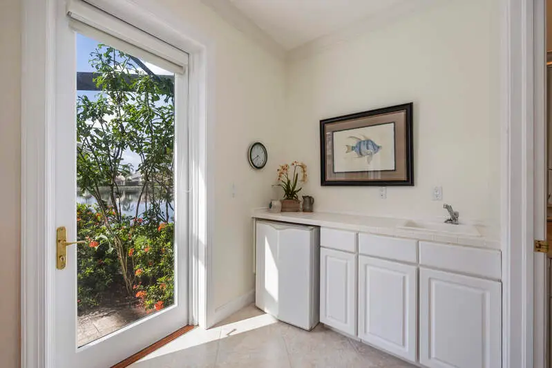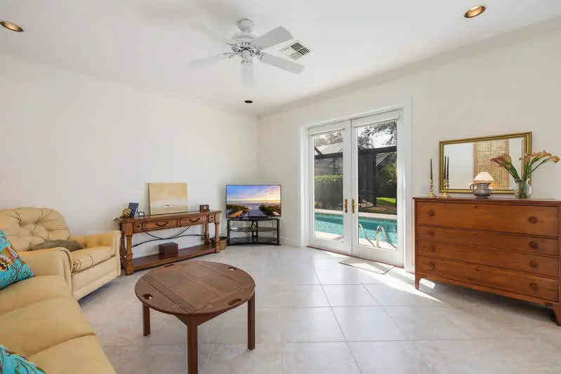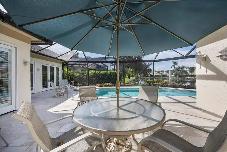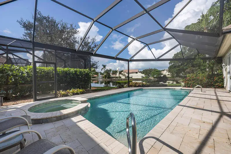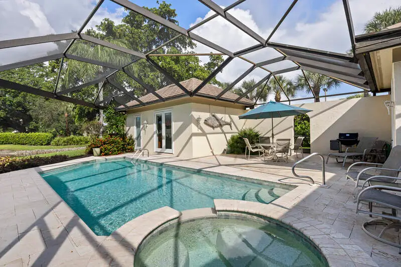 Experience over 2,400 square feet of refined living in this 3-bedroom, 3-bath residence with a 2-car garage, perfectly positioned to capture serene views of the lake and water feature. The main home showcases an open layout with a beautifully renovated kitchen flowing into the spacious living and dining areas. The primary suite provides a true retreat with walk-in closets, dual vanities, a soaking tub, and a walk-in shower, while a guest bedroom and full bath complete the main living space. A detached 1-bedroom, 1-bath cabana offers exceptional flexibility-ideal for guests, a home office, or a private studio. Outdoor living is equally impressive with a screened lanai featuring a pool and spa, multiple seating areas, and tranquil lake views. Upgrades include wood flooring, plantation shutters, impact windows and doors, and hurricane shutters for added peace of mind. Nestled within the highly sought-after Pelican Bay community, residents enjoy exclusive amenities such as two private beachfront pavilions, tennis and pickleball courts, a state-of-the-art fitness center, and a lively community center, all just moments from Naples' premier dining, shopping, and cultural attractions.
