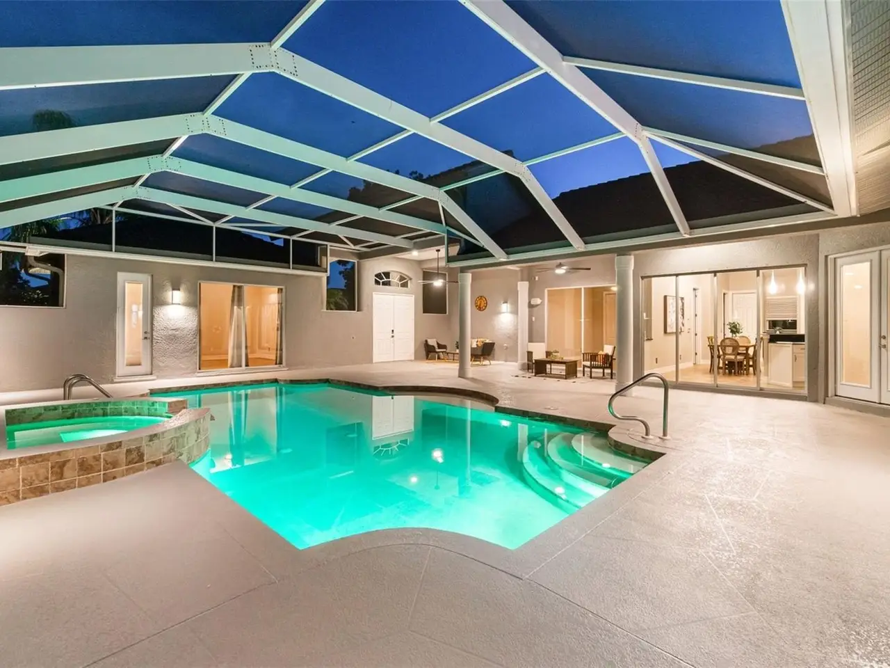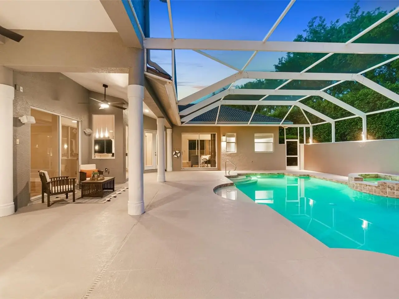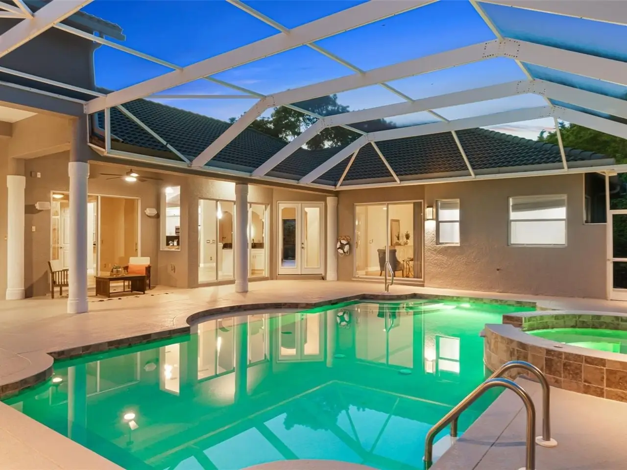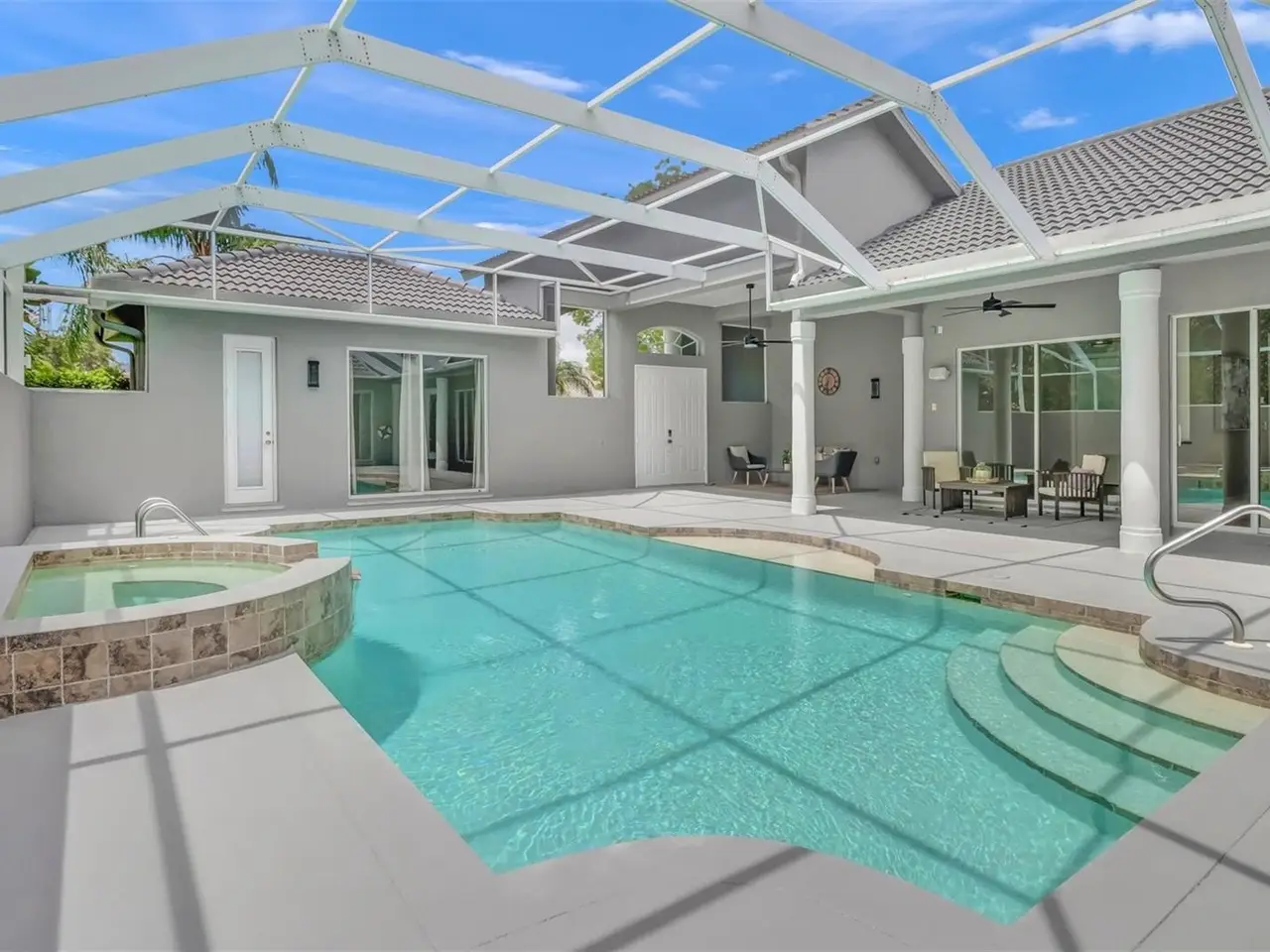Luxurious Home in the Sought-After Wilshire Lakes Gated Community. Welcome to your dream home in the desirable Wilshire Lakes community. This exquisite property invites you into a stunning courtyard, accessible from various rooms throughout the home. The courtyard features a serene, lighted and heated pool/spa with a cascading waterfall, perfect for relaxation and self-care. Ideal for entertaining family and guests, this private oasis is enclosed by a screened courtyard offering both sun and shaded areas. The pool has new heating, filtration, lighting and fans for ambience, this courtyard/lanai ensures year-round enjoyment. This contemporary design includes four spacious bedrooms and 3.5 baths that has been meticulously maintained highlighted by an extra-large open kitchen with high vaulted ceilings, new cabinetry that boast rare Brazilian granite countertops with an extra-long beveled edge, stunning hardware and light fixtures, a wet bar on a diagonal for great conversations adjacent to the dinette area. The kitchen features appliances, including a pot-filling tap over the stove/oven, microwave, and refrigerator and a new dishwasher. Plenty of cabinet space with a pantry and built in desk area. This home was built in 2005 there are extra windows to bring in the bright natural light along with the appealing views. French doors off lanai that is easily accessible for a pool lavatory that has decorative art tiles and a pedestal sink. Walk through the grand pillars with vaulted ceilings and you will enter the living room, offering a relaxing retreat with privacy bushes and a view of the backyard lake. The primary bedroom is a sanctuary with an ensuite bath featuring a tile shower, spa tub, large walk-in closet, linen closet, dual sinks, vanity and provides a private water closet. Additionally, it has sliding doors leading to the courtyard along with a private side porch/dog run. A spacious laundry room with granite countertops, plenty of cabinetry, a washer/dryer, and a utility sink. That leads to the two-car garage, includes hurricane shutters and attic access. The courtyard includes a separate guest In-law suite/Cabana with a detached private entrance, kitchenette (stove, refrigerator, cabinets, sink), full bathroom, closet, and separate air conditioning. The traditional Florida exterior that has been completely painted, professionally landscaped along with landscaping lights, new sod in the front and the side yard, new roof in 2019. Situated on a private street corner, this home offers low HOA fees with great amenities and access to “A” rated schools. It’s conveniently located near North Naples shopping, dining, parks, and the beautiful Gulf beaches. Don’t miss the opportunity to own this stunning property in Wilshire Lakes. Schedule a tour today and experience luxury living at its finest!