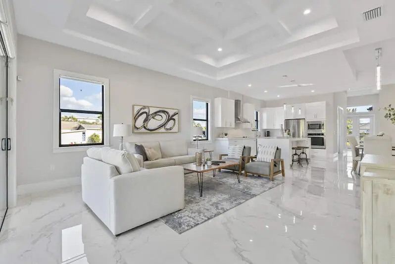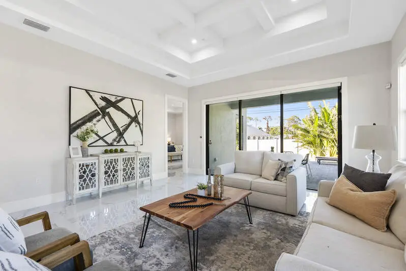 Minutes to Vanderbilt Beach and the Ritz Carlton, welcome to 799 108th Ave N, a stunning home in the highly sought-after Naples Park, ideal for full-time living, a vacation retreat, or a lucrative investment property like Airbnb. This 4-bedroom, 3-bathroom pool home offers a fantastic combination of luxury and convenience. Professionally furnished, this modern gem features an open-concept floor plan with high ceilings, crown molding, and a sleek tile roof. The gourmet kitchen boasts 42" white wood cabinets, a large dine-at island with Quartz countertops, stainless steel appliances, and a hooded range that flows seamlessly into the spacious living area with coffered tray ceilings and large paneled sliding doors. Step outside to enjoy the expansive lanai, complete with an outdoor kitchen and built-in BBQ, perfect for entertaining. The private, fenced-in pool adds a touch of relaxation. The primary suite is a true retreat, with a walk-in shower, freestanding soaking tub, dual vanity, and a generous walk-in closet with an organizing system. Just 5 minutes from Naples' stunning beaches, Mercato shopping and dining, and the newly updated Pavilion shopping center, you can easily drive, walk, or bike to all the best local attractions. Don't miss the opportunity to own this incredible property in one of Naples' most desirable neighborhoods!