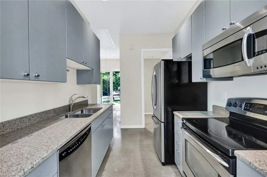 Discover a masterfully crafted Florida Vernacular estate in the heart of Oakes Estates, Naples, FL, where expert craftsmanship meets timeless design. This stunning property offers a main house, guest house, and expansive outdoor spaces, all designed with quality and longevity in mind. The main home features 3 bedrooms plus a den. Soaring 10-ft ceilings and 8-ft doors throughout create an open and airy feel, while prairie-style windows enhance its architectural charm. The interior showcases custom, locally crafted solid rock maple cabinetry and unstained white oak flooring, adding warmth and character to the home. The primary suite boasts a one-piece marble shower and a custom walk-in closet. Functionality meets convenience with a whole-house reverse osmosis system, a new exterior and interior paint job, and masonry construction. The home is designed with no interior load-bearing walls, allowing for a flexible floor plan for potential future updates. Extra-deep garages provide ample storage, and the property includes an air-conditioned shed. Additional features include a central vacuum system with a new motor, copper plumbing, a newer water heater, and a 5-ton AC. The guest house, built in 2006, offers 1,100 sq. ft. under air with 2 bedrooms and 1.5 baths. It features polished concrete floors, impact-resistant PGT windows, and high-end finishes, including granite countertops and luxury German cabinetry. Stainless steel appliances complete the modern kitchen, making it a perfect retreat for guests or extended family. Outdoor living is a dream with a 3/4 wraparound porch that exudes Florida Vernacular charm. The property includes a gunite pool with a new filter recently installed. A tranquil canal in the backyard provides a perfect spot for fishing, with large-mouth bass, peacock bass, snook, and gar frequently found in the waters. Situated in Zone X, flood insurance is not required. The home sits 50 inches above the crown of the road, ensuring an elevated and secure foundation. This estate seamlessly blends luxury, durability, and thoughtful design, creating a home that is as functional as it is beautiful. Enjoy the serene, private setting of Oakes Estates while being just minutes from Naples' world-class dining, shopping, and beaches. Schedule a private showing today and experience this one-of-a-kind property for yourself!