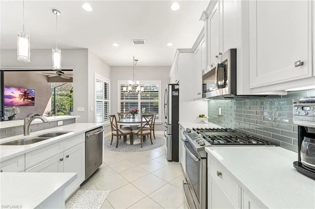 Welcome to your MOVE-IN ready dream home, nestled in the highly sought-after community of Stonecreek. This stunning residence offers a perfect blend of luxury, comfort, and modern living, offered TURNKEY and ready for immediate enjoyment. Professionally decorated, this home boasts 3 bedrooms, den, 3 bathrooms, and 3-car garage with epoxy flooring, providing ample space and comfort for family and guests. The heart of the home features a chef-inspired kitchen complete with upgraded stainless-steel appliances, quartz countertops, and generous counter space, perfect for entertaining. Enjoy an open-concept living area that flows seamlessly. Step outside to your private backyard retreat, where you can relax by the pool featuring a panoramic screen cage, host barbecues, or simply enjoy the serene environment. The fenced yard offers perfect additional outdoor space. Throughout this beautiful home are abundant embellishments, including a FULL-HOUSE GENERATOR, plantation shutters, designer lighting, upgraded landscaping, and much more. Located in the coveted NATURAL GAS community of Stonecreek, residents enjoy access to top-notch amenities, including a clubhouse, fitness center, 5 tennis courts, 4 pickleball courts and a full-time activities director to keep the fun going year-round for all ages. The reasonable HOA fees include lawn care, for more time to relax. The community offers convenience to shopping, dining, and entertainment, and a top-rated school zone.