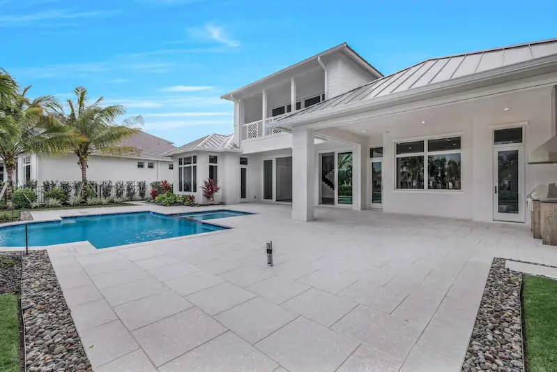 New construction, completed November 2023. The oasis is a four bedroom, den, and loft home with four bathrooms plus two half-baths. Built by Distinctive Communities in the gated North Naples community of The Enclave of Distinction. A private boutique neighborhood of 27 homes, the Oasis is situated on a beautiful SE homesite with a water view. This 4,869 square foot home boasts views as soon as you walk through the front door, through the living room, to the resort-style pool with an outdoor cook center and fire pit. The gourmet-inspired kitchen features Viking appliances, custom wood cabinetry, and Pompeii quartz countertops. It flows into the family room, accented with a gas fireplace. The main suite on the first floor features volume ceilings, a private sitting area, a luxurious bathroom with a freestanding soaking tub, a walk-in shower, dual vanities, and two oversized walk-in closets. Also located on the first floor is a den, en-suite guest bedroom, formal dining room, and butlers pantry. The second floor includes two on-suite guest rooms and a lounge/media room with an open balcony—minutes to shopping, gulf beaches, Mercato, SW FL International Airport, and fine dining.