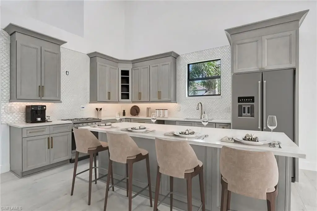 Discover Luxury living in this newly constructed two-story residence nestled on a prestigious corner lot on the 500 block in Naples Park. Just one block from the Gulf, this exquisite home offers unparalleled convenience and coastal living at its finest. The property boasts remarkable outdoor spaces, including a stunning pool with a sun shelf, an outdoor grill, and a dedicated pool bathroom, perfect for entertaining and relaxation. Inside, the home is bathed in natural light and features amotion-sensored lighted staircase with a gorgeous glass railing leading to two additional bedrooms, two full baths and an upstairs bonus room. This architectural masterpiece combines modern elegance with thoughtful design, making it a rare find in a coveted location. Some of these photos have been virtually staged.