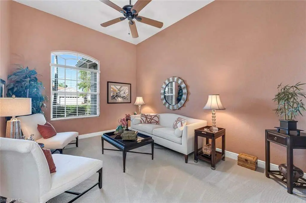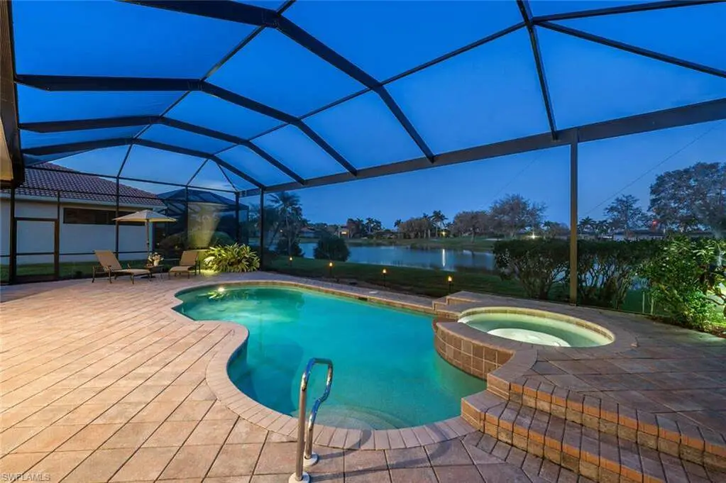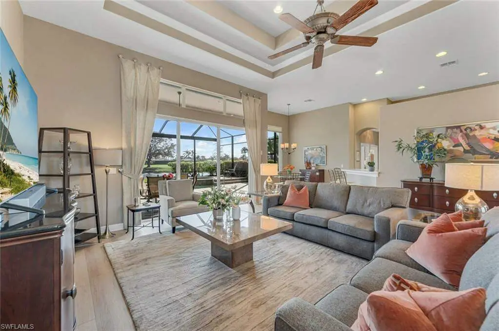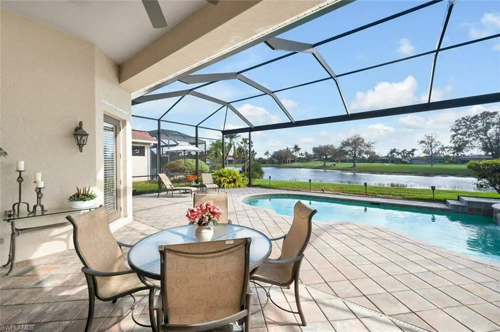 PRICE IMPROVEMENT on this Toll Brothers Sandpiper model on Cerromar Drive In Naples Lakes Country Club is now available to make it your own. Walk in through the double front doors to a 13' coffer ceiling great room, with a beautiful golf, and lake view of hole number 8. This spacious great room with sliding doors that pockets in, is facing east and fills the room with natural sunlight making it the perfect place to relax and enjoy the scenic serene life you always imagined having in the coveted Naples Lakes Country Club. This home has a split bedroom floor plan with 3 bedrooms, a den and 3 full baths. Primary suite with his and her walk in closets. Two additional generous size bedrooms, a den/office with solid French doors for privacy if needed for overflow of guests. Open kitchen design has been updated with quartz countertop, and stainless steel appliances. A mitered picture window breakfast area for your enjoyment. New roof and pool cage in 2019, new AC in 2021. So move right in and enjoy all of Naples Lakes Country Club has to offer from day one. Naples Lakes Country Club is a bundled golf course community, an Arnold Palmer signature golf course designed to challenge every level of players. A full golf and country club privileges with ownership of a home. Tru-Hard tennis courts, Bocce, out door dining at Arnie's, grill room and formal dining at the clubhouse. Many fun filled activities to keep you busy awaits. Naples Lakes Country Club is conveniently located to down town 5th Avenue, famous for shopping, restaurants, and Marco Island. Minutes away from Physicians Regional Hospital
