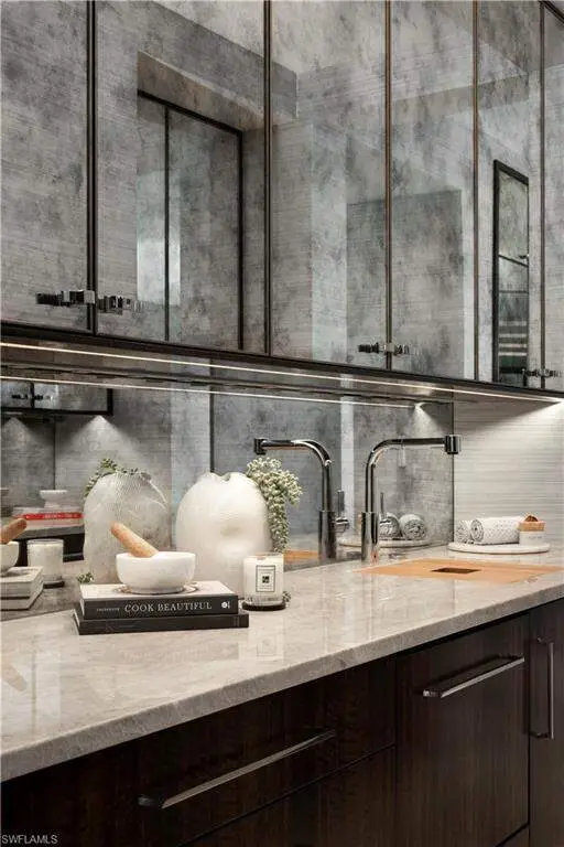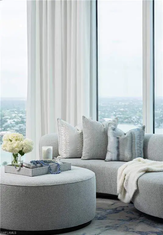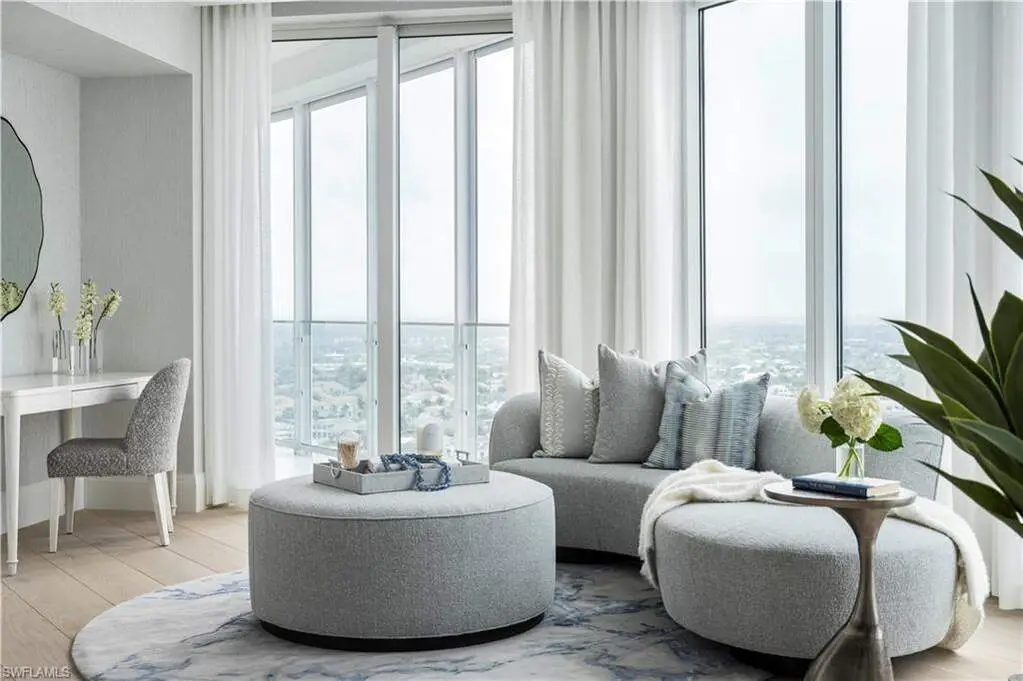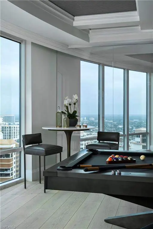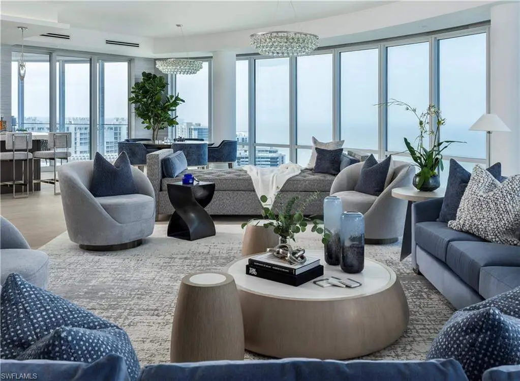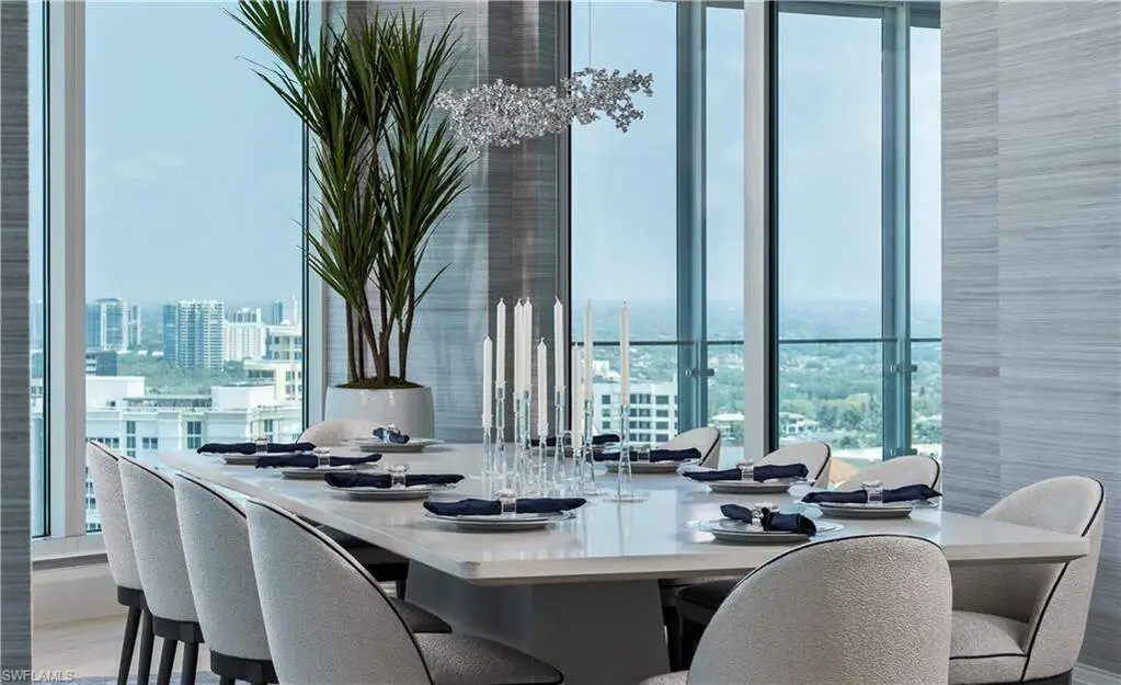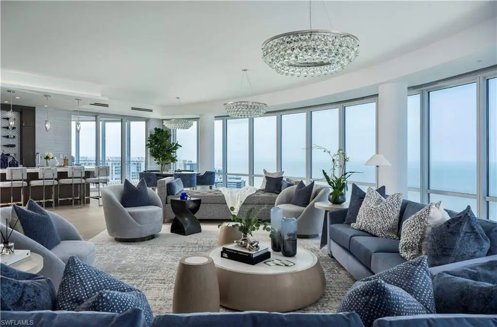 Where coastal elegance meets timeless sophistication, Penthouse #3 at The Regent offers a truly rare opportunity to own one of Naples' most prestigious sky residences. Encompassing 12,135 square feet of thoughtfully designed living space, this exquisite penthouse is gracefully perched above the turquoise waters of the Gulf of Mexico, with unrivaled panoramic views stretching endlessly along the coastline. Bathed in natural light and kissed by Gulf breezes, the residence seamlessly blends classic refinement with relaxed seaside charm. Expansive glass walls open to generous terraces, inviting the outdoors in and capturing the colors and calm of the sea from sunrise to sunset. The home features five spacious bedroom suites, each with a private bath, along with two additional powder rooms, a richly appointed study, a comfortable media room, and a tranquil cabana room that offers a quiet escape with direct terrace access. A distinctive and sought-after highlight, the private guest cottage suite provides a serene haven of its own-complete with a full guest kitchen, covered terrace, and private elevator access-perfect for extended stays or independent living quarters. From the elegant formal spaces to the chef's kitchen and discreet butler's pantry, every detail has been curated to enhance livability while maintaining a sense of effortless luxury. Rarely found in high-rise residences, the climate-controlled private 3-car garage offers both convenience and security. Set within The Regent at Park Shore, a landmark of coastal luxury with white-glove service, gated privacy, and direct beach access, Penthouse #3 offers not only a residence, but a lifestyle-where sophistication flows as naturally as the tides, and every day is framed by the beauty of the sea.