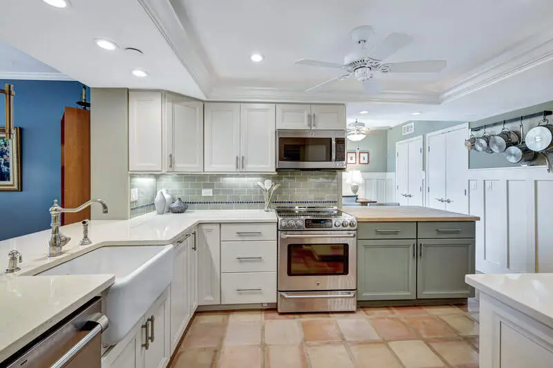 Step into coastal elegance with this recently remodeled condo in the beautiful Lucerne building in the Moorings. Designed with comfort and style in mind, this spacious two-bedroom, two-bath residence offers a harmonious blend of modern amenities, timeless charm and amazing outdoor space. The kitchen is a chef's dream-featuring custom cabinetry, stainless steel appliances, quartz and butcherblock countertops, recessed lighting, and stunning Saltillo tile flooring. An adjoining breakfast area opens to a private terrace-perfect for dining alfresco, enjoying the refreshing Gulf breeze, or planting your very own herb garden. Entertain with ease from the custom wet bar, complete with a separate ice maker and wine fridge. The expansive living and dining area with custom crown molding and hurricane-impact sliders opens seamlessly to the large screened lanai-ideal for relaxing or hosting guests. Retreat to the peaceful master suite with its private terrace, oversized custom walk-in closet, and spa-inspired bath featuring a generous walk-in shower and soaking Jacuzzi tub. Lucerne is a low-density building that offers an ideal deeded beach access, a bayside pool, community room, poolside BBQ area, under-building parking, ample guest spaces, and more. Boat docks are also available for lease. Come enjoy this amazing Naples' lifestyle!