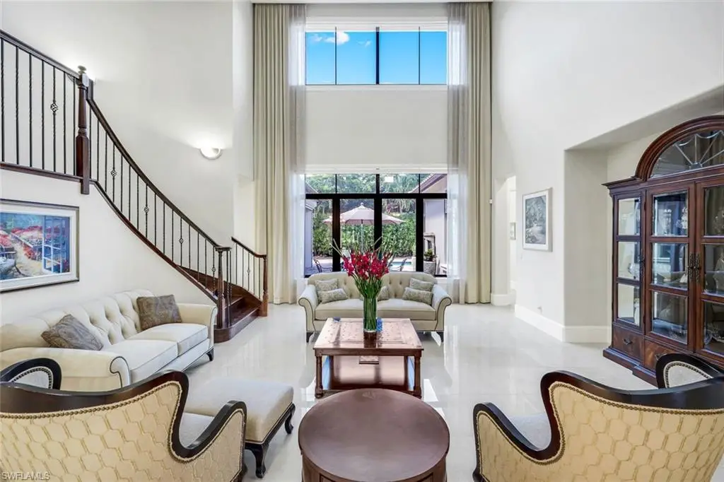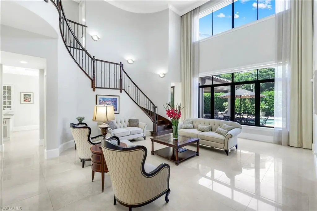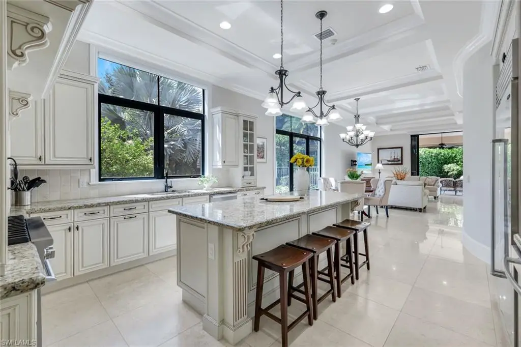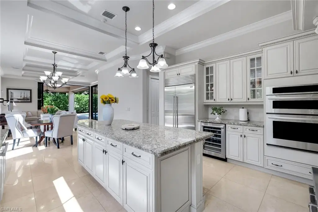 Refined Elegance & Secluded Serenity in Traditions at Grey Oaks. Nestled in the prestigious enclave of Traditions at Grey Oaks, this exceptional two-story residence offers an elegant blend of timeless design and serene living. Set on a quiet, private homesite, this spacious home captures the essence of refined luxury and effortless comfort. The main level features a gracious primary suite, while three generously sized ensuite guest bedrooms and an expansive upstairs living area provide the perfect balance of privacy and hospitality. Soaring ceilings and an abundance of natural light accentuate the homes airy, open ambiance. At the heart of the home, the gourmet kitchen is a chefs masterpieceequipped with a Viking gas range, Sub-Zero refrigeration, and abundant prep spaceideal for intimate dinners or grand-scale entertaining. Seamless indoor-outdoor living is achieved through a retractable screened lanai, which opens to a private, resort-style pool and spa framed by lush landscaping and three tranquil fountains. The setting is a true sanctuary, offering unmatched peace and privacy. A charming side patio invites quiet mornings with coffee or golden-hour relaxation, completing this harmonious retreat. Experience the pinnacle of Naples luxury livingwhere sophistication meets tranquility in one of the areas most coveted communities.