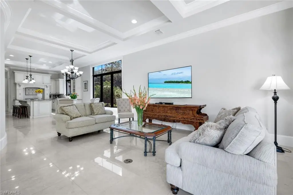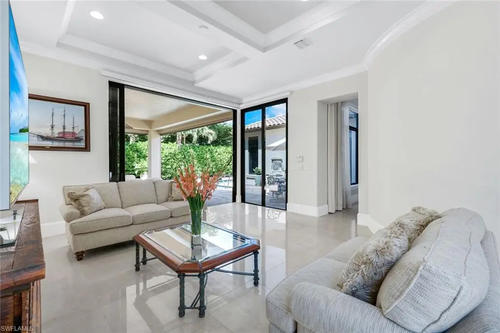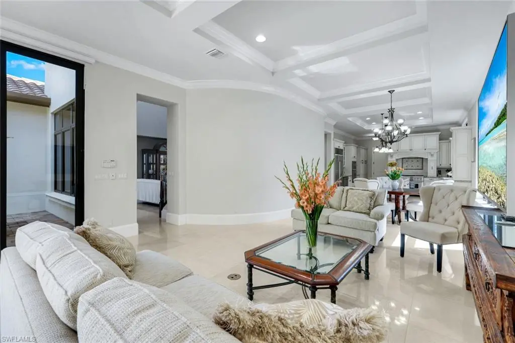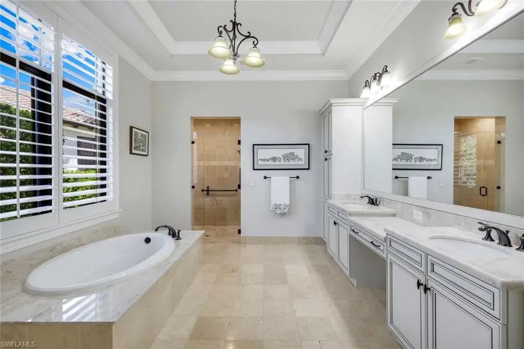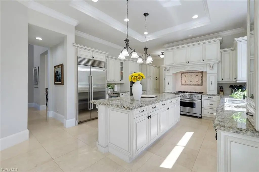 Refined Elegance & Secluded Serenity in Traditions at Grey Oaks. Nestled in the prestigious enclave of Traditions at Grey Oaks, this exceptional two-story residence offers an elegant blend of timeless design and serene living. Set on a quiet, private homesite, this spacious home captures the essence of refined luxury and effortless comfort. The main level features a gracious primary suite, while three generously sized ensuite guest bedrooms and an expansive upstairs living area provide the perfect balance of privacy and hospitality. Soaring ceilings and an abundance of natural light accentuate the homes airy, open ambiance. At the heart of the home, the gourmet kitchen is a chefs masterpieceequipped with a Viking gas range, Sub-Zero refrigeration, and abundant prep spaceideal for intimate dinners or grand-scale entertaining. Seamless indoor-outdoor living is achieved through a retractable screened lanai, which opens to a private, resort-style pool and spa framed by lush landscaping and three tranquil fountains. The setting is a true sanctuary, offering unmatched peace and privacy. A charming side patio invites quiet mornings with coffee or golden-hour relaxation, completing this harmonious retreat. Experience the pinnacle of Naples luxury livingwhere sophistication meets tranquility in one of the areas most coveted communities.