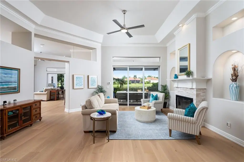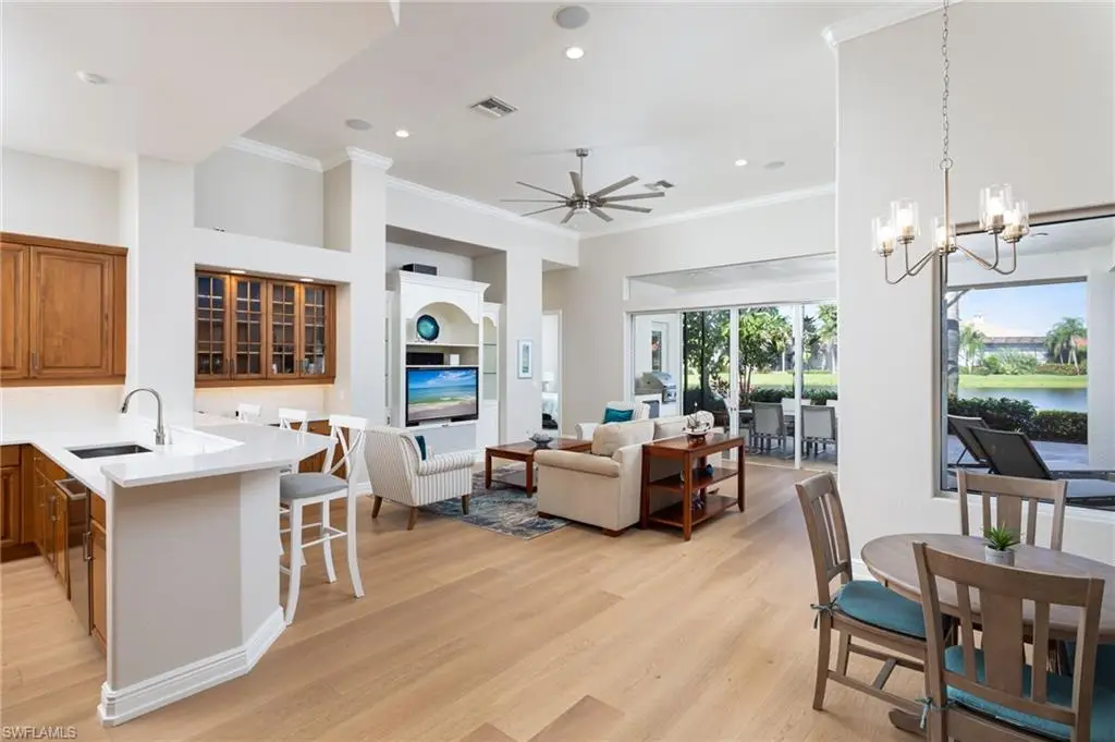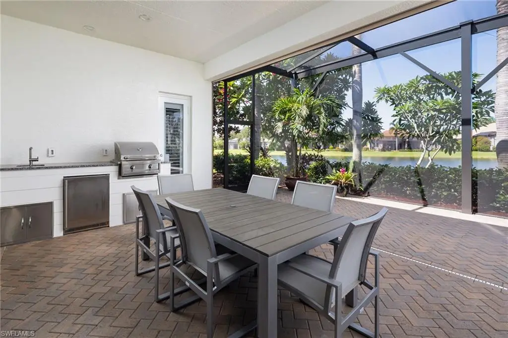Step into an exceptional expression of luxury living within one of North NaplesÆ most sought-after country club communities. This meticulously renovated estate spans over 3,700 square feet of thoughtfully designed interiors, blending timeless architecture with the convenience of modern technology. Every element has been curated with precision between 2021 and 2025. The home showcases reimagined indoor and outdoor kitchens with premium appliances, quartz and granite finishes, and under-cabinet lighting. Flooring transitions seamlessly from rich hardwood in living areas to soft carpeting in bedrooms and elegant tile in baths. All bathrooms have been retiled with updated sinks, fixtures, and His-and-Her primary suites. Enhanced lighting, plantation shutters, and a custom entertainment center elevate everyday living. Impact-resistant windows and doors, wind-rated garage systems, new HVAC, water heaters, and roof with gutters ensure peace of mind. Smart-phone integration allows effortless control of appliances, HVAC, pool, security, and storm shadesùunderscoring a lifestyle defined by both sophistication and ease. The screened lanai frames a resort-style pool and spa with new enclosure and equipment, offering a serene backdrop of lake views and dramatic sunsets. Beyond the residence, The Vineyards delivers an unmatched resort lifestyle. Homeowners enjoy the security of gated privacy and the natural beauty of manicured lakes, lush landscaping, and winding paths. Steps away, the communityÆs country club presents championship golf, tennis, pickleball, a state-of-the-art fitness center, resort pools, and vibrant social programming. Nearby, NaplesÆ world-class beaches, dining, theaters, and upscale shopping complete the experience. A rare opportunity to own a property where every detail has been consideredùthis home represents the perfect balance of luxury, lifestyle, and lasting value.
