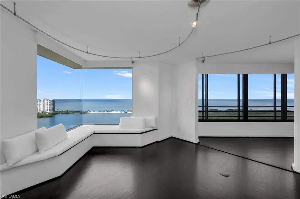 Nestled in the heart of Naples, this exceptional 21st floor end unit offering over 2400sqft, is a fusion of modern elegance and coastal charm, a fully renovated sanctuary where clean lines rule the day. A true gem offering serene living with modern luxury and is just waiting to be your idyllic retreat. Start your mornings with breathtaking, uninterrupted panoramic views of the Gulf and Clam Pass through expansive walls of sliding windows that open and two mitered glass corner windows, a design marvel that invites the serene beauty of sunsets year-round. This residence is a haven for culinary aficionados, boasting loads of storage space and stainless high-end appliances, including Sub Zero, which cater to your every culinary whim. The generous primary suite with Gulf front sitting area has LONG water views & lovely sleek bath offering two sinks, an oversized glass shower, ample storage, and a fully outfitted walk in closet. Guests are tucked away in their own suite with VIEWS of Pelican Bay plus full bath & even more closets. The Heron is an intimate, well-appointed building with just 2 units per floor and 40 units total: lives like having your own home in the sky! This gem has a fabulous great room style floorplan with forever views that take center stage. Immerse yourself in the Pelican Bay lifestyle replete with unparalleled community amenities: miles of beach, nature paths to explore, private beachfront restaurants for savored moments, and beach services that redefine relaxation. Engage in a variety of lifestyle events and wellness classes at the full-service fitness center, or indulge in the thrill of tennis or pickleball on pristine courts, with pro shops at your service. A community center, canoes, kayaks, and sailing bring adventure to your doorstep, while bespoke nutrition services in the wellness studio cater to your well-being. Ideally situated within walking distance to Waterside Shops & Artis Naples, convenience meets sophistication in this sky-high blank canvas where you can craft your dream home