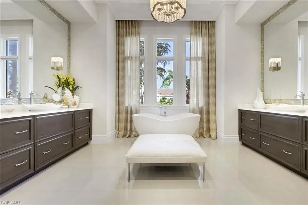 Welcome to a Signature luxury design, The "Atherton". From the moment you step inside, you'll notice the exceptional craftsmanship and meticulous attention to detail throughout. This newly updated and beautifully decorated and fully furnished residence is light and bright and designed for both comfort and style. The open concept floor plan features high vaulted ceilings and stunning private views. The home offers a split plan to 3 private guest ensuites and a 4th master bedroom with a striking island bathtub and large walk-in steam shower. Located in this almost 5000sqft estate is every amenity: a bar area, an open chef's kitchen with two large counter islands, a private dining area that seats up to 10, a home office, and an exercise room. This is a home that needs nothing! Leading from the living room with pocket sliders is a fantastic outdoor living space and a sun-drenched recrafted new pool and spa. This space has been well thought out and beautifully furnished to host all your family times and make gathering with friends effortless and entertaining! The outdoor fireplace and romantic pool fire feature allows for those cool Seasonal evenings when you just need to relax. This entire outdoor entertainment space includes auto screens and shutters. No options were spared in this former model including a whole home generator. The lush grounds of Quail West have made it the hidden gem of Southwest Florida for many years. 36-holes of golf designed by Arthur Hills. Amazing fitness Center, Salon, and exceptional private dining options make this home and private club a delicious opportunity. Golf Membership Available.