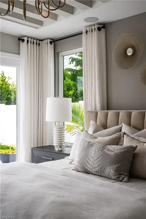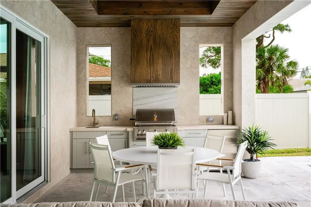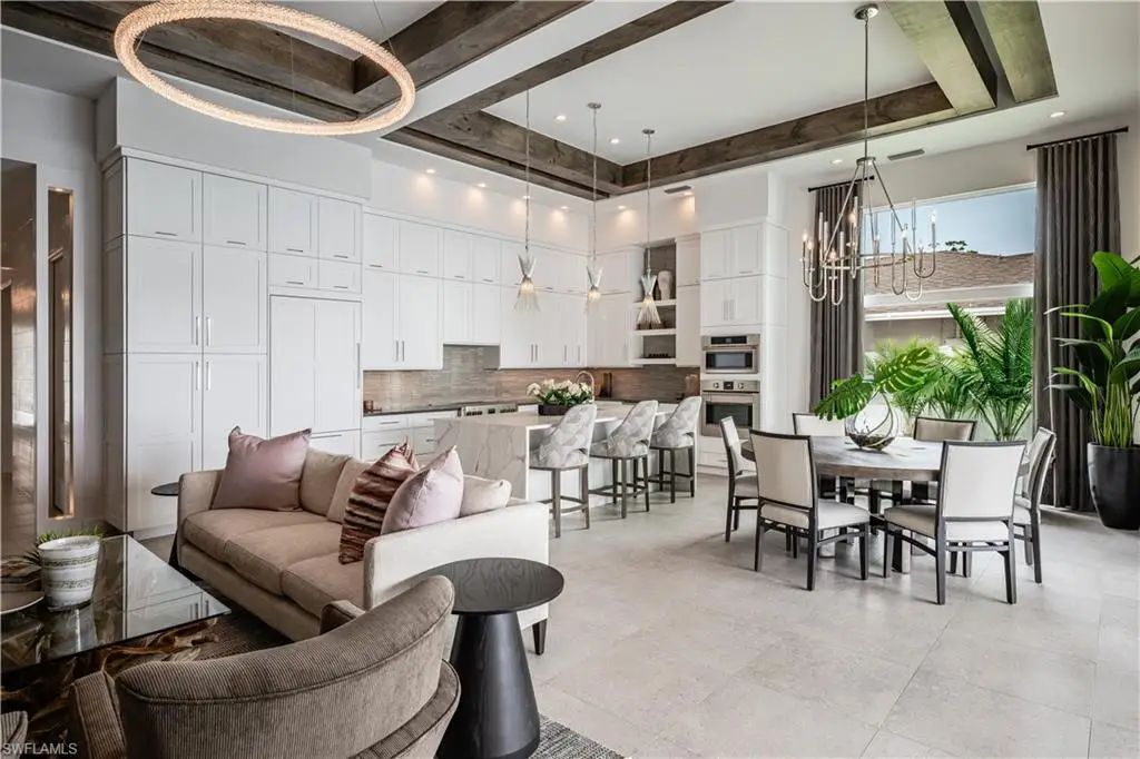 New construction home designed and curated with a contemporary theme with coastal flair by Clive Daniel, built by LaGrasta Homes, located just moments from the serene Naples beaches, presents refined living with its custom, open floor plan that effortlessly connects indoor spaces with outdoor living areas, leading to an elegant resort-style pool. The kitchen, designed for culinary excellence, comes equipped with high-end Fulgor Milano, XO, and Asko appliances. This residence features 4 bedrooms, a study for versatility, and 5 bathrooms, showcasing tall ceilings and abundant natural light throughout. The formal entryway welcomes into a space where luxury is defined by subtle and refined design, setting a new standard for sophisticated living in Naples.
