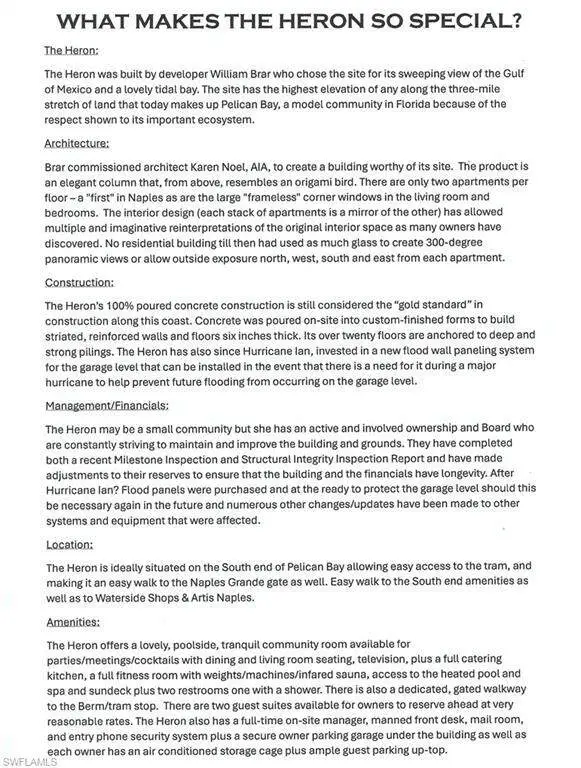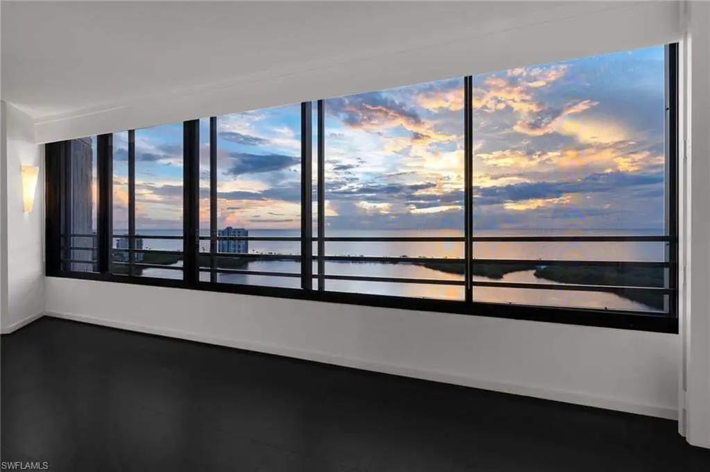 Nestled in the heart of Naples, this exceptional 21st floor end unit offering over 2400sqft, is a fusion of modern elegance and coastal charm, a fully renovated sanctuary where clean lines rule the day. A true gem offering serene living with modern luxury and is just waiting to be your idyllic retreat. Start your mornings with breathtaking, uninterrupted panoramic views of the Gulf and Clam Pass through expansive walls of sliding windows that open and two mitered glass corner windows, a design marvel that invites the serene beauty of sunsets year-round. This residence is a haven for culinary aficionados, boasting loads of storage space and stainless high-end appliances, including Sub Zero, which cater to your every culinary whim. The generous primary suite with Gulf front sitting area has LONG water views & lovely sleek bath offering two sinks, an oversized glass shower, ample storage, and a fully outfitted walk in closet. Guests are tucked away in their own suite with VIEWS of Pelican Bay plus full bath & even more closets. The Heron is an intimate, well-appointed building with just 2 units per floor and 40 units total: lives like having your own home in the sky! This gem has a fabulous great room style floorplan with forever views that take center stage. Immerse yourself in the Pelican Bay lifestyle replete with unparalleled community amenities: miles of beach, nature paths to explore, private beachfront restaurants for savored moments, and beach services that redefine relaxation. Engage in a variety of lifestyle events and wellness classes at the full-service fitness center, or indulge in the thrill of tennis or pickleball on pristine courts, with pro shops at your service. A community center, canoes, kayaks, and sailing bring adventure to your doorstep, while bespoke nutrition services in the wellness studio cater to your well-being. Ideally situated within walking distance to Waterside Shops & Artis Naples, convenience meets sophistication in this sky-high blank canvas where you can craft your dream home