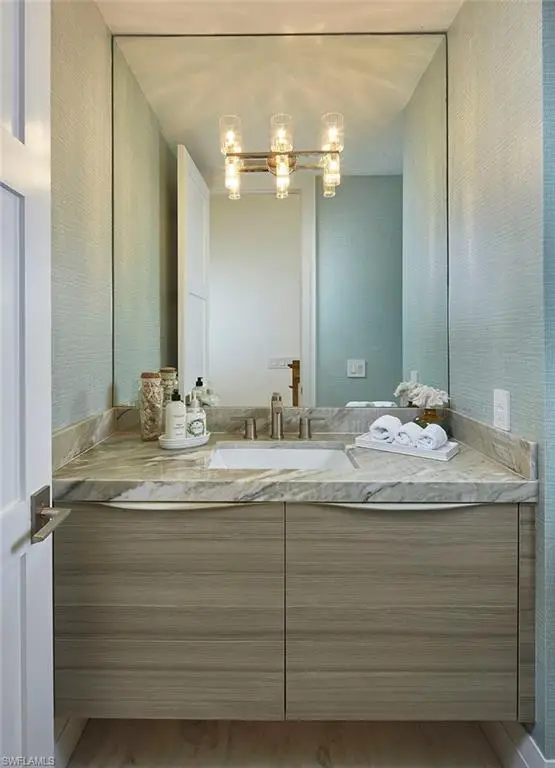 Colonade is a prestigious, luxury gated community in Park Shore with only a short walk to the Private Beach Park and Venetian Village. Over 2,900 square foot second floor condo with private elevator and one car private garage. Completely renovated, meticulously redesigned open floor plan, three bedrooms, 2.5 baths and a separate sun room/den, all surrounding with new hurricane impact windows that gives light and airy feel throughout. New air conditioning unit and duct work, linear diffusers, rich Legno Bastone wood floors, Italian custom kitchen cabinets, double islands with high end quartzite countertop, Thermador built-in refrigerator, double oven/microwave and 266 bottle, temperature-controlled walk-in glass-wall wine room. Thoughtfully redesigned luxury primary and guest baths with marble floors, marble shower walls and custom cabinets. This beautifully furnished residence combines luxury and comfort to the most sophisticated buyer. Pet-friendly community (two dogs up to 40 pounds) with amenities include heated pool and spa, newly renovated clubhouse, exercise room and poolside grills to enjoy. Just a short walk to Park Shore Resident Private Beach and Venetian Village with casual and fine dining and countless boutiques for the best shopping experience.