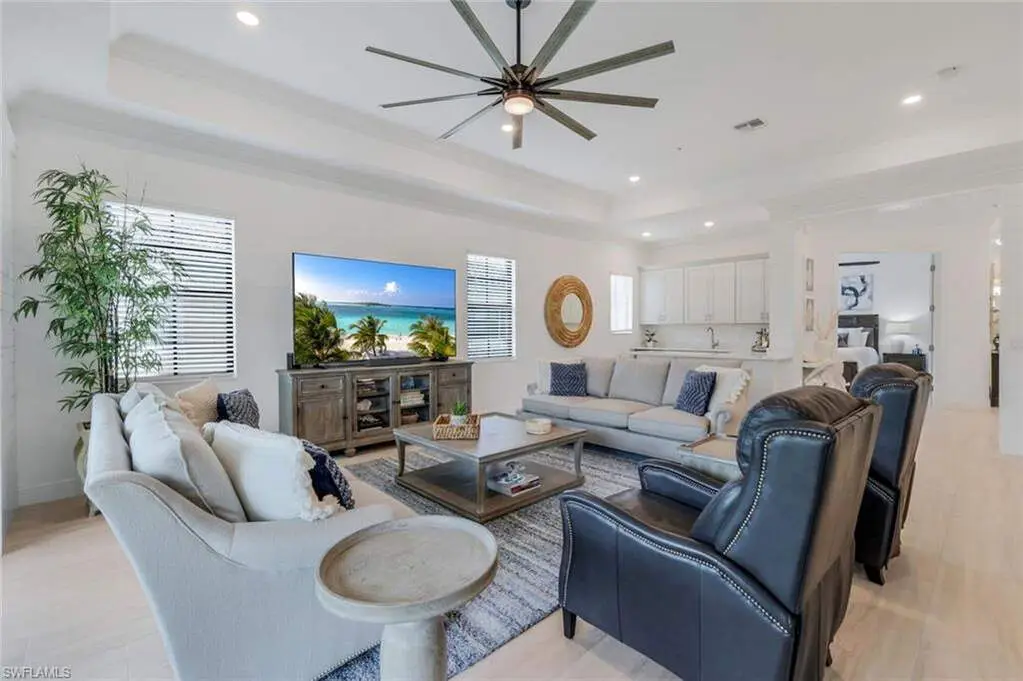 Your Naples Dream Home is ready- Turnkey Furnished Luxury in Naples' Most Exclusive Boating & Golf Community! Welcome to Regatta Landing, the newest and most sought-after enclave in Windstar on Naples Bay, where luxury living meets unmatched lifestyle perks. Built in 2021, this professionally decorated and turnkey furnished residence spans 3,403 square feet under air and 4,437 total square feet, offering an expansive layout with four Bedrooms, three Full Bathrooms, and multiple outdoor living spaces, including balconies and a spacious screened lanai with serene views. Step inside to discover soaring 14-foot ceilings and an elevated coastal design throughout. The open concept floor plan features a private elevator, gourmet kitchen with oversized island, Monogram appliance package, quartz countertops, walk-in pantry, coffee bar, wet bar, and wine cooler making it perfect for entertaining in effortless style. Elegant finishes like shiplap detailing add charm and warmth, while the oversized attached two-car garage, with extra storage area, and hurricane impact doors and windows provide both comfort and security.Beyond the residence lies a lifestyle that is truly unmatched. Windstar on Naples Bay is a guard-gated, private country club community offering a world of amenities: a Tom Fazio-designed 18-hole championship golf course, tennis, and a soon-to-be-completed state-of-the-art fitness center overlooking the water (2026). The bayside clubhouse offers fine dining with sweeping views, while a private boat shuttle whisks you away to Windstar's exclusive retreat on Keewaydin Island, where a pristine beach awaits. For boaters, Windstar boasts a private deepwater marina with 72 slips, private Marina Clubhouse and a full-time harbormaster. All of this is just five minutes from downtown Naples, where world-class dining, shopping, and beaches await, and right next to the Bayshore Arts District, one of the city's most vibrant neighborhoods. This is more than a home....it's a gateway to the ultimate Naples lifestyle.