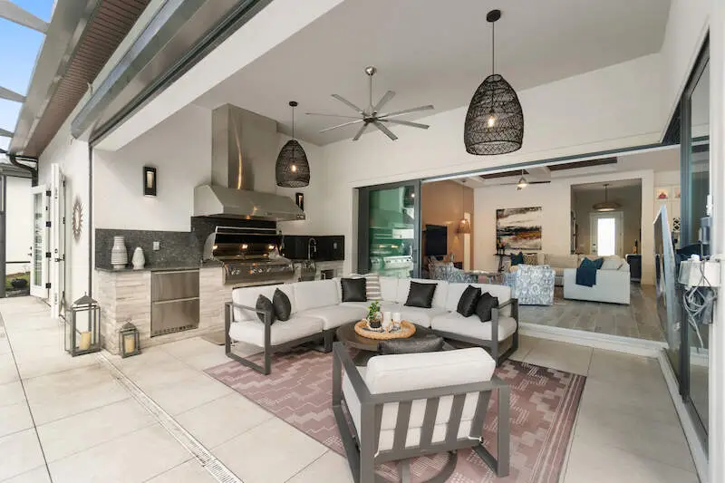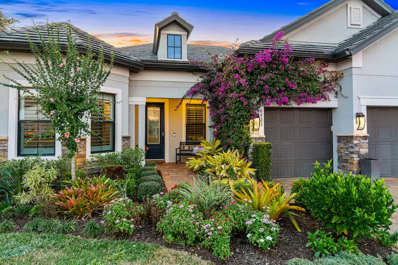 Discover a lifestyle of unparalleled luxury and leisure in the prestigious Greyhawk community. The most desired and meticulously enhanced Pinnacle model, offering 3 bedrooms + den and a 3-car garage, redefines elegance with its flawless design and sophisticated charm. Designer-style furniture and decor are also available, making it effortlessly move-in ready. Enjoy the rare opportunity of IMMEDIATE GOLF membership-bypass the waitlist and immerse yourself in the world of world-class golf, a privilege rarely found in today's market. As you walk through the grand entrance, framed by vibrant bougainvillea and flowering plants, you'll feel the warmth of a space and tons of natural light. The living room, with its coffered ceilings lined in real wood wallpaper, sets the tone for a home that's equal parts stylish and inviting. Sunlight streams through added French doors in the kitchen and master bedroom, creating a seamless connection to the outdoors. In the kitchen, the details are a chef's dream: upgraded kitchen cabinetry with above lighted glass cabinets, a custom pantry, wine fridge, electric hot water dispenser that ensures your morning coffee or evening tea is always within reach. Every space has been thoughtfully enhanced, from the illuminated mirrors and upgraded lighting to the custom-built closets that keep everything perfectly in place. This home features sleek tile flooring in all areas, and luxurious wood flooring adds warmth and elegance to the master suite. Step outside, and your private oasis unfolds. Nestled on a secluded lot, the home is surrounded by lush landscaping that transforms the space into a serene retreat. As evening falls, custom outdoor lighting casts a warm glow, creating an enchanting atmosphere perfect for relaxing or entertaining under the stars. Entire lanai deck pavers have been removed and replaced by non-slip ceramic tiles. Picture evenings by the saltwater pool and spa, renovated with elegant tile, and controlled effortlessly by a phone app. Cooking in your fully equipped outdoor kitchen, featuring a FireMagic grill, is a true delight. The upgrades continue with features designed for effortless living: hurricane impact doors and windows, lanai hurricane electric roll-down screens for added safety, a Generac natural gas-fed generator, the air-conditioned and insulated garage, complete with electric storage racks and pull-down attic access, that is as functional as it is impressive. And the list goes on! This is your opportunity to not just own a home but to embrace an extraordinary lifestyle. Schedule your private showing today, and let your story begin here.