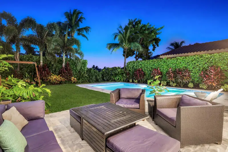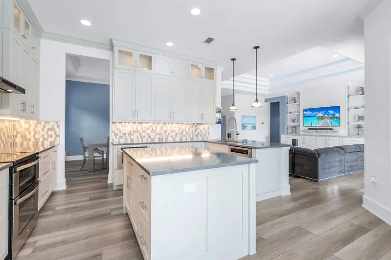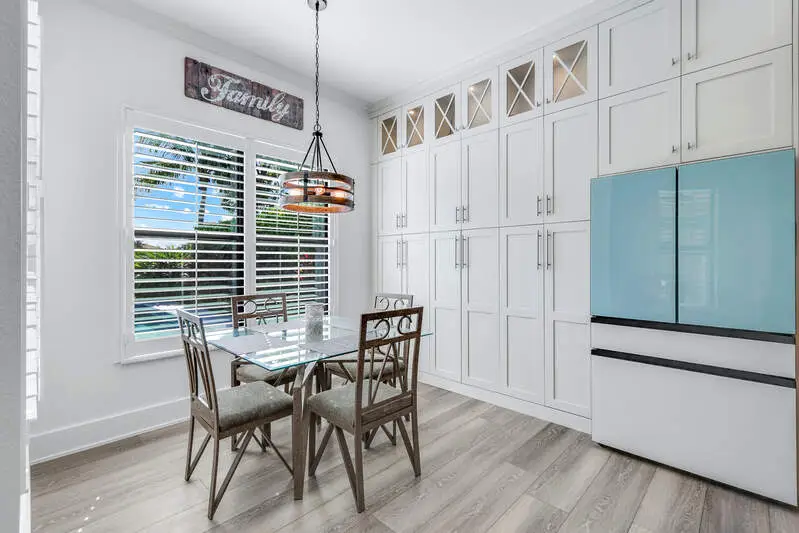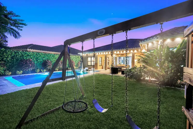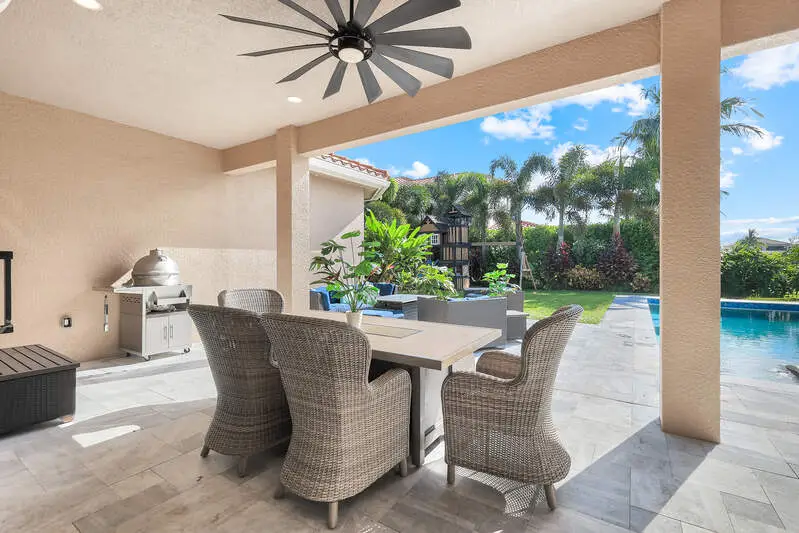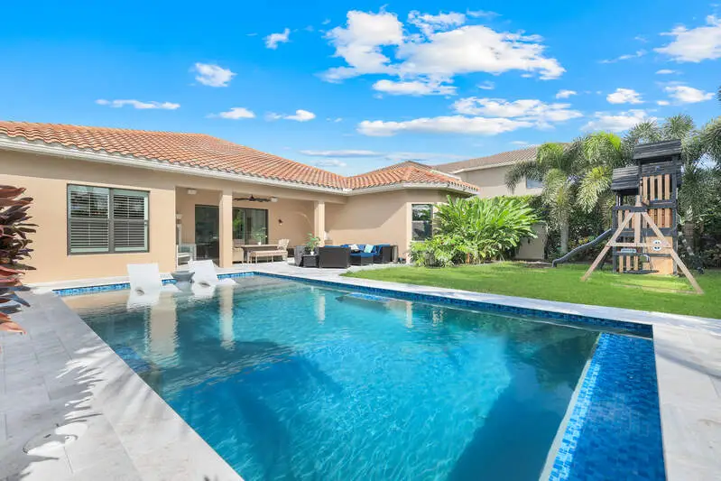 Escape the ordinary and discover your own private oasis. This updated Riverstone home offers 2,609 sq. ft. of beautifully refreshed living space and a backyard designed for both relaxation and play-perfect for enjoying the vibrant Naples lifestyle. Step inside and be greeted by a soaring 14-foot foyer that opens to a bright and inviting great room, complete with a custom built-in, shiplap accents and a dramatic double trey ceiling with color-changing uplighting. Entertain with ease in the remodeled gourmet kitchen featuring granite counters, floor-to-ceiling shaker cabinetry with glass accents and lighting, pull-outs, pot drawers, a vented hood, tile backsplash, and a central island. A Samsung Bespoke refrigerator, newer appliances, and a casual dining nook complete the chef's dream space. The spacious primary suite is a true retreat, offering room for a sitting area, two custom walk-in closets, and a stunning updated bath with frameless glass shower, rain head and jets, a liner drain, and re-tiled tub surround. There's room for everyone with three additional bedrooms, with versatility to use one as a den, office, or hobby room, plus two guest baths. Fine finishes include built-in closets throughout, LVP flooring, plantation shutters, tall baseboards and crown molding. A finished laundry room with 2024 LG washer/dryer, cabinets, and sink add both function and style. Peace of mind comes with a new A/C system (2024) with UV light and Iflow cleaning system. Out back, discover your own outdoor oasis. A custom, extra-large heated saltwater pool (2022) with sandblasted marble paver lanai anchors a private, fully fenced, landscaped setting. Relax or dine under the covered lanai, enjoy music through outdoor speakers, and let evenings glow with permanent LED soffit lighting. A fenced yard with lush landscaping and playset makes it as practical as it is fun. Located in Riverstone, a social, vacation-inspired community zoned for "A" rated schools. Recreation area includes a fitness center, social hall, resort & lap pools, spa, 5 Har-Tru tennis courts, basketball & pickleball court, tot lot & activities coordinator. Why wait for a vacation to feel tranquility when you can experience paradise every day?